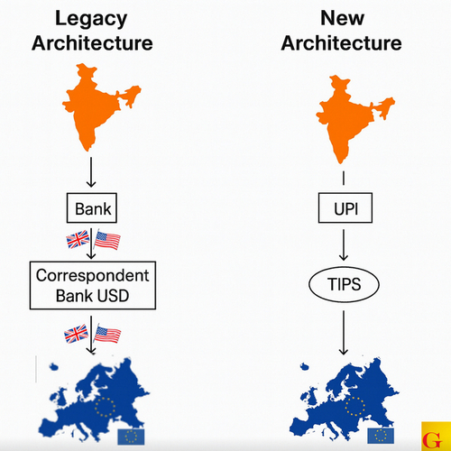 欧盟与印度建立直接支付机制,SWIFT与美元体系控制逐渐松动,美元中心化进入退潮期1. 印度储备银行(印央行)发布声明,印度和欧元区已同意开始正式工作,将印度的统一支付接口(UPI)与欧元体系的TARGET即时支付结算(TIPS)直连。技术集成完成后,印度卢比与欧元零售系统之间就会有跨境即时支付渠道。这绕开了SWIFT与美元体系,加快了支付速度,也能降低成本,跳过了中间商。2. 技术性来说,UPI是印度已经发展成熟的支付体系,不需要新建。欧元的TIPS也是成熟的,二者互连就行了。以前印度汇款人将资金转给欧洲收款人,先要卢比兑美元,再美元兑欧元,还要通过纽约代理银行的美元清算。表面上银行有卢比与欧元的兑换价格,其实是通过美元对二者比值推算的,大多数银行维持的是美元市场而非欧元市场。3. 相关基础知识是,每个国家发行自己的货币,电子的需要清算系统,就是数据库上的数字为什么是合法的钱。这不难,就是央行负责这一切,确认电子钱是钱,而钱交易换主也要央行来确认,这就是清算,中国是CNAPS,最初是对内的。技术上为了提高效率,还分大额HVPS、小额BEPS、网银IBPS几个子系统。对内清算是一个最基础的系统,如果发展到对外清算,就需要另一个对外的子系统,中国是CIPS(跨境人民币支付系统),处理人民币内外交易、以及外外交易(也就是离岸)。CIPS处理请求后,最终是接入到CNAPS来处理。欧元整合了多国央行,境内与跨境转账系统都是TARGET2。美元境内结算的叫Fedwire,跨境/离岸清算系统叫CHIPS。4. 印度的大额支付系统叫RTGS,小额零售的叫UPI(统一支付接口)。这个UPI是印度很骄傲的一个发明,向多国推销,支持网络支付。但印度比较落后的是,跨境结算没有独立系统名称,用RTGS系统和2022年推出的Vostro账户机制顶一下。这个Vostro账户,就是境外银行在印度银行开设的卢比账户。俄罗斯和印度做石油生意就是这么干的,收了很多卢比。等于是人家要按印度规矩来办,而不是和人家对接。现在印度终于用UPI和欧元区对接了,开始想办法了。5. 卢比和欧元直接对接,人民币与卢布直接对接。这在以前的理解里,都是属于自己搞事,不是标准动作。理论上来说,全球所有国家都来参与SWIFT报文体系,按统一标准提出货币转账、兑换要求,这是方便全球统一做生意的体系。历史上SWIFT起了很大作用,大家不用分头对接,都按SWIFT的规矩办,就能加入全球做生意。6. 但是,SWIFT干着干着就不对劲了,出现了极度美元中心化的现象。所有货币都与美元换,直接换也有,但占比太小。成对交易份额最高的是美元与欧元,占比22.7%。与美元无关的成对交易中,份额最高的是欧元与英镑,但只有2.0%。人民币在SWIFT里占比7%(总比例200%),其中6.6%是和美元换,和其它货币换的太少。这是一种金融现象,人们图方便就自然选择优势最大的一种货币,最后就中心化了。7. 美元中心化虽然理论上方便,但是各国慢慢认识到不对劲了。一个是SWIFT效率太低、手续费太高,二个是都经过美元转,让美国占太大便宜。而且用美元有风险,被冻结股收制裁,美元价值下降等等。现在趋势是,有实力的货币,觉得不需要让美元占这便宜,纷纷商量搞事,“没有中间商”的去美元化运动越来越火。印度就是比较积极的,如和东南亚直接贸易。南美区域内交易也有去美元化的动作。全球多地都有行动,美元中心化进入退潮期。8. 去美元化干得最大的中国。已经不想在SWFIT里面打了,专心发展CIPS,想方便做生意就来CIPS。这是用CIPS来和SWIFT对抗,一国的体系和世界体系,表面上看不对劲。但由于中国实力强大,实际也能搞起来。SWIFT实在太落后了,1970年代搞起来的,缺点太多。
