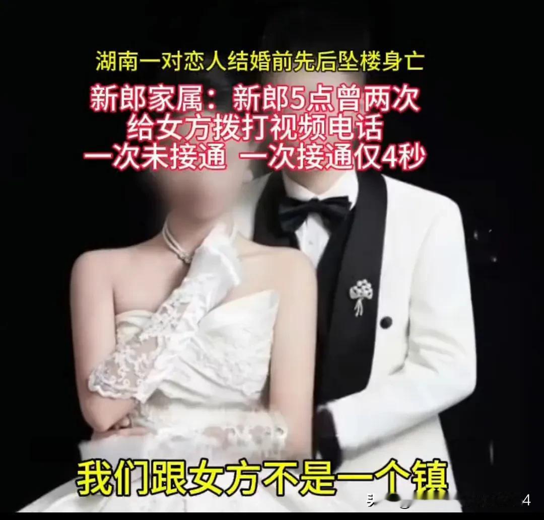 问世间,情为何物,直教人生死相许 一对第二天就要结婚的准新人,新郎醉酒坠楼身亡,新娘看到尸体当即从同一位置跳楼殉情 而男方家属却提出质疑,不认可警方的醉酒坠楼说法。称堂弟尸体是早上7时40分发现的。凌晨2点时,监控中看堂弟还没有醉酒的情况,而在5点零4分时还曾拨打视频电话给女方,第一次未接通,第二次拨打接通仅4秒 这里面会不会有什么事情?两人同住为何需视频通话呢?还说:“我们男方的家庭条件也好,有车有房,如果女方提经济方面的条件,我堂弟肯定会答应” 有网友就说,明明是俩人一起开早餐店,一起辛苦打拼,而且女孩还跟着殉情了,结果上来就强调男方家庭条件好,女方提条件什么什么的,感觉这男方家里人也不是很明事理。 还有网友甚至说,一看说辞就是尽办法想泼女方脏水 真是替这新娘不值啊,都殉情了,男方家属还在提什么经济条件。钱难道比命重要,这家真不配有这么重感情的儿媳! 如果遇到这样爱你的伴侣,您会舍得她受委屈吗?