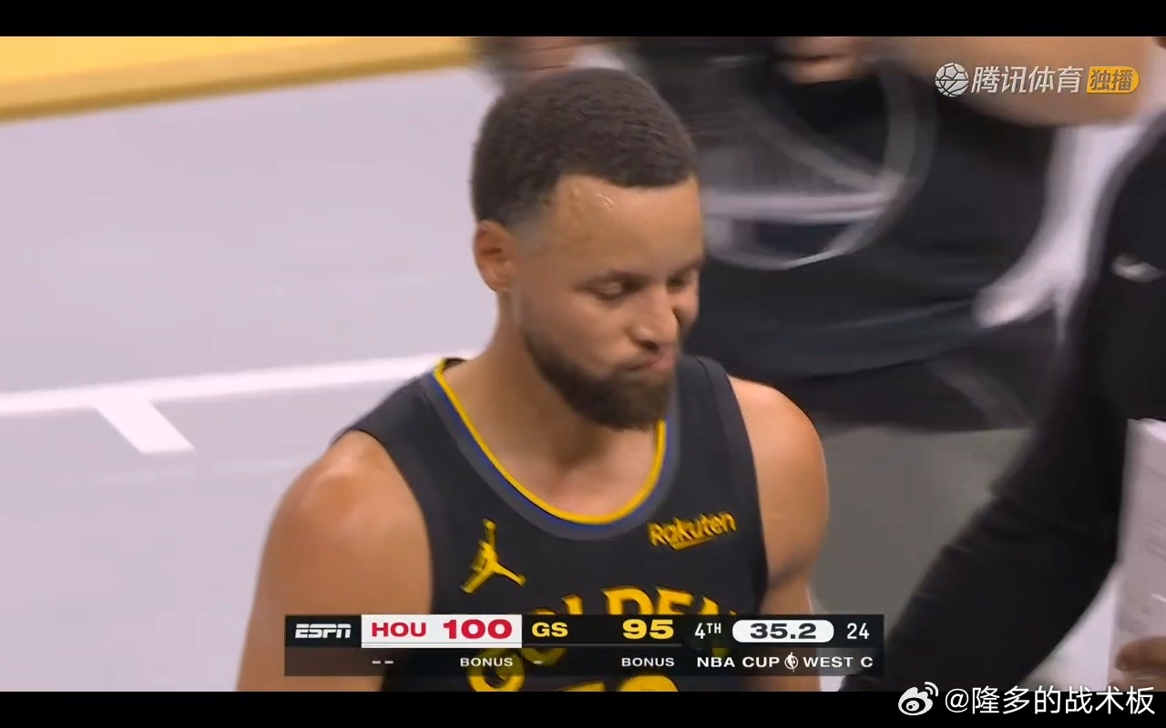 勇士被火箭逆转了,不幸的是,库里提前伤退。就是这个回合,防守阿门时被撞到。希望没