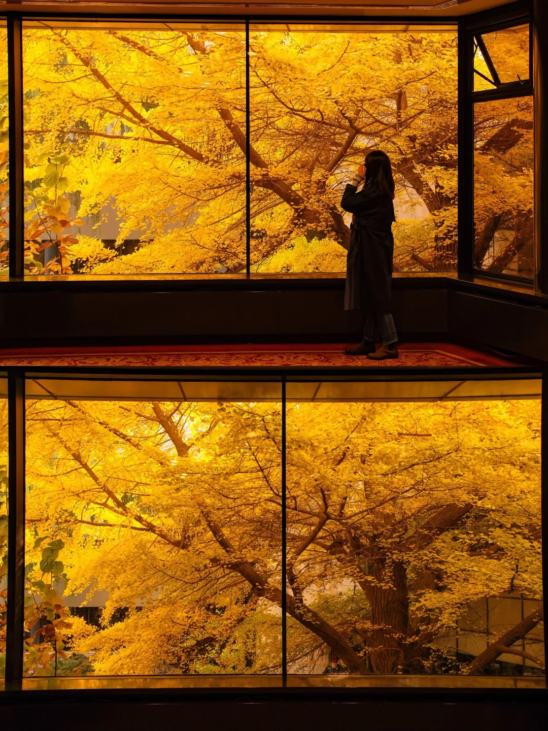 那一扇窗,框住了整个北平的金色秋天。时光静默,唯有落叶翩跹如诗。