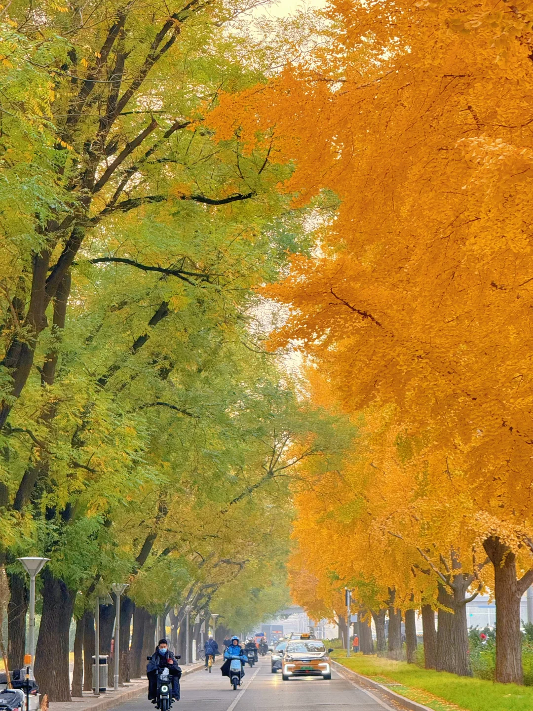 走入东五街,仿佛步入另一个时空。安静、洁净,只有脚下落叶的轻响和头顶无边的金黄,是属于秋天的、柔软的奢侈。