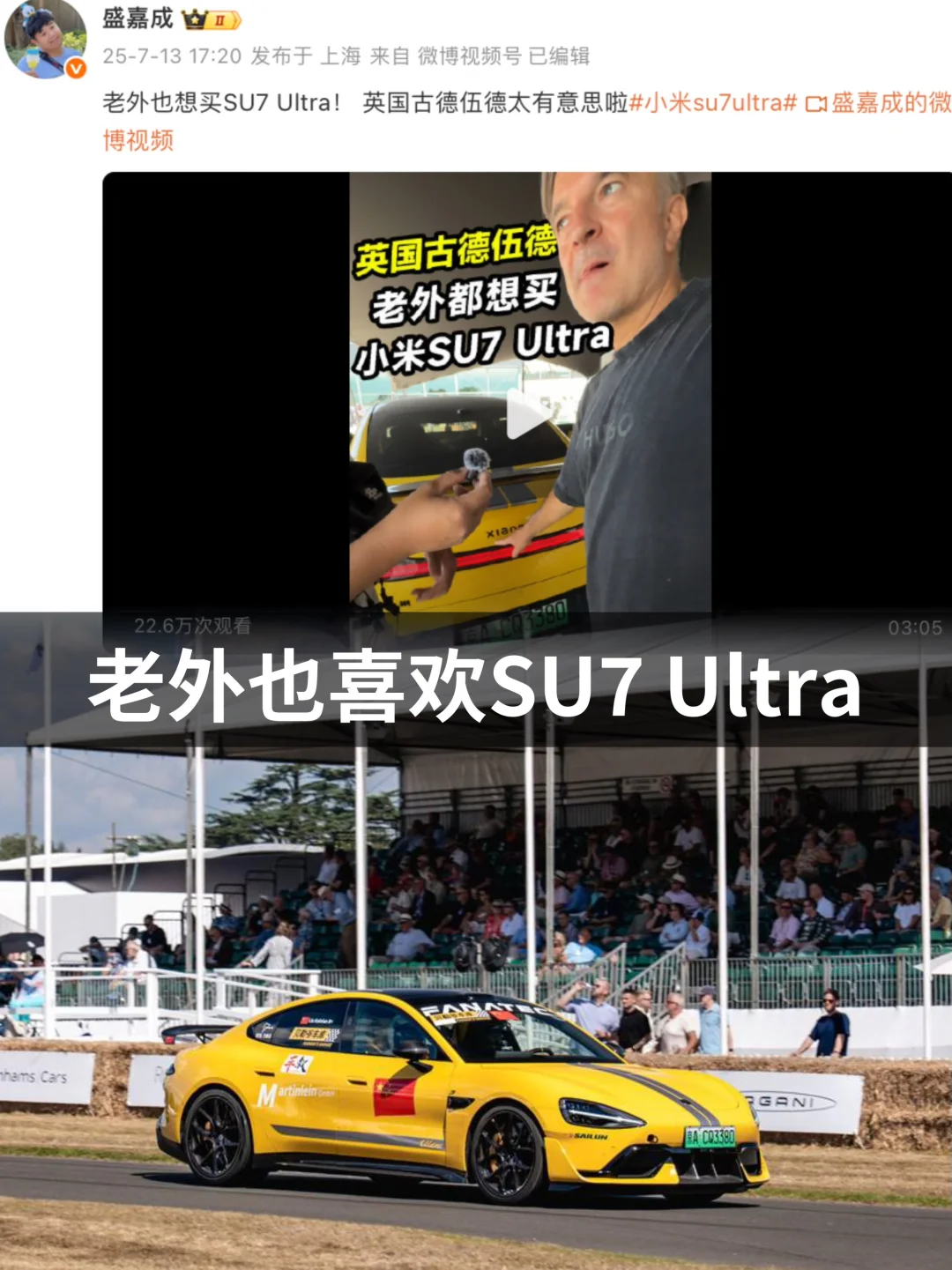 🚗在被叫做 “汽车圣殿” 的纽博格林赛道,小米 SU7 Ultra量产版跑出7分04秒957,比不少老牌燃油性能车都快,当场就火了。在古德伍德,小米作为少数被官方请去的国产汽车,和保时捷、阿斯顿马丁这些大牌一起比了赛。 🇬🇧英国车评人盛嘉成采访外国人时,对方说得特实在:“你们小米SU7 Ultra太厉害!” 这种外国朋友不带偏向的夸奖,比啥广告都管用。陈哲然也说,小米这次亮相,让所有国产品牌都沾光,这话很有分量。以前我们总羡慕德国车、日本车定规矩,现在中国品牌终于被重视了。 🏁其实好多人不是觉得新能源车“快”没用,而是觉得它们光加速快,没驾驶乐趣,就算放到所有车里比也一样。但小米这次是按性能车的标准来做的,不只是在电动车里厉害。 ❤️能在别人定的规则里赢了对方,就说明你有资格定新规则了。就像陈哲然说的:“一方面得学会在西方现有的规则里玩;另一方面,也得想想能不能定自己的规则,把话语权握在手里。”