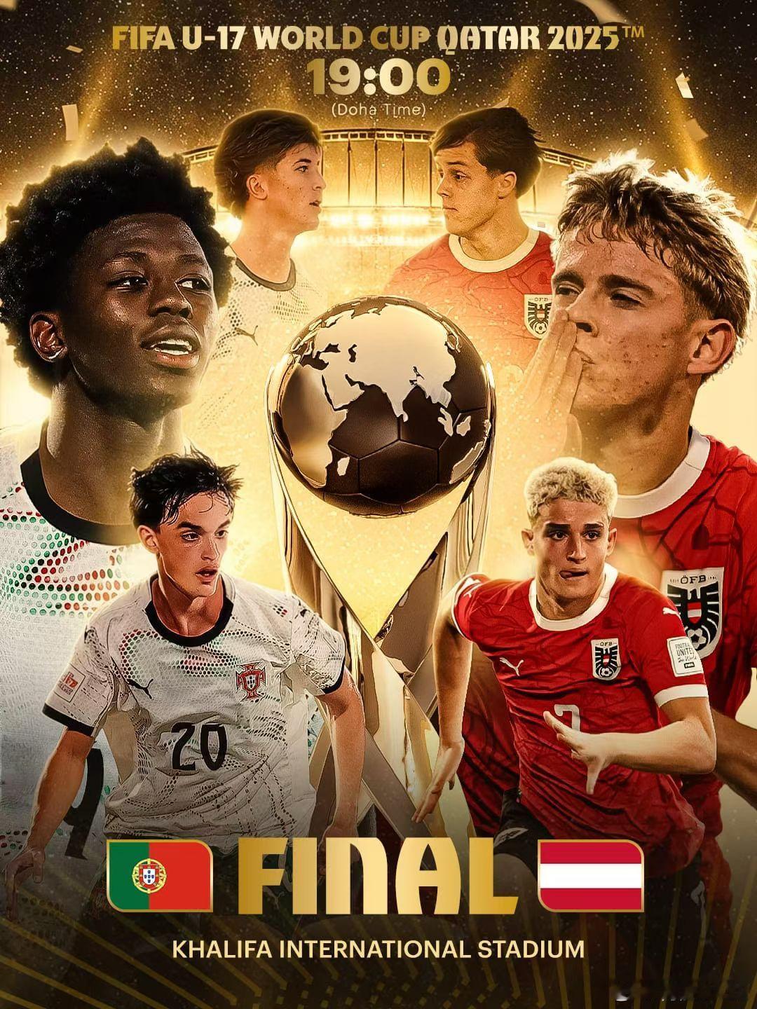 U17世界杯决赛今晚开打,葡萄牙和奥地利将争夺冠军奖杯,多哈当地19:00,北京时间00:00u17世界杯