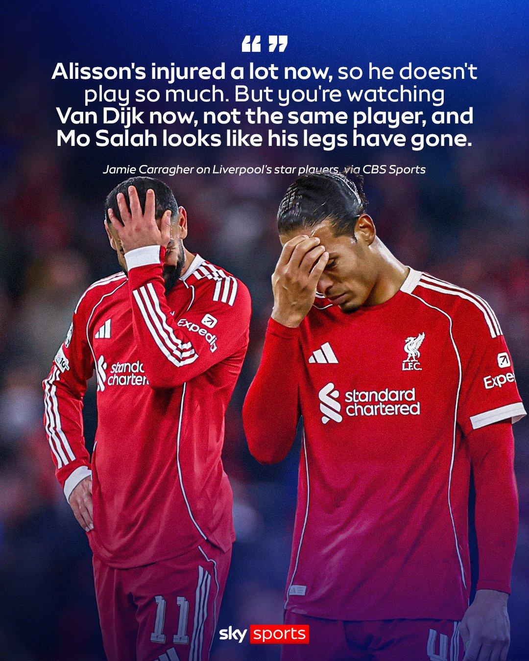 【王朝走向尾声】利物浦1-4埃因霍温的赛后,卡拉格认为利物浦自2018年萨拉赫、范戴克和阿利松加盟后开启的这段王朝,如今正走向尾声。 他说:“我觉得现在看到的是,2018年克洛普治下的利物浦开启了这段征程,七八年过去了,而这段辉煌的催化剂正是阿利松、范戴克和萨拉赫。” “阿利松现在伤病不断,出场次数锐减。范戴克也不再是当年的那个球员了,萨拉赫的双腿也仿佛失去了往日的活力。我并不想批评他们,而且我觉得本赛季对他们的一些批评有些苛刻。” “球队不顺的时候,你总希望队里的领袖能站出来。我对萨拉赫在场外的表现一直有看法,我希望他今晚能站出来接受采访,和利物浦球迷谈谈球员们打算怎么做,说说更衣室里的情况,给球迷们一些情况会好转的希望。” “我一直是支持主教练的那一派,说实话,我对球员感到愤怒。” “但我不愿意在球场上批评他们,因为他们凭借过往的成就已是传奇,只是状态确实下滑了。范戴克现在连自己都顾不上,更别说帮队友了,他现在就是个普通的中卫,可能他也不再是那个‘超人’了。”利物浦