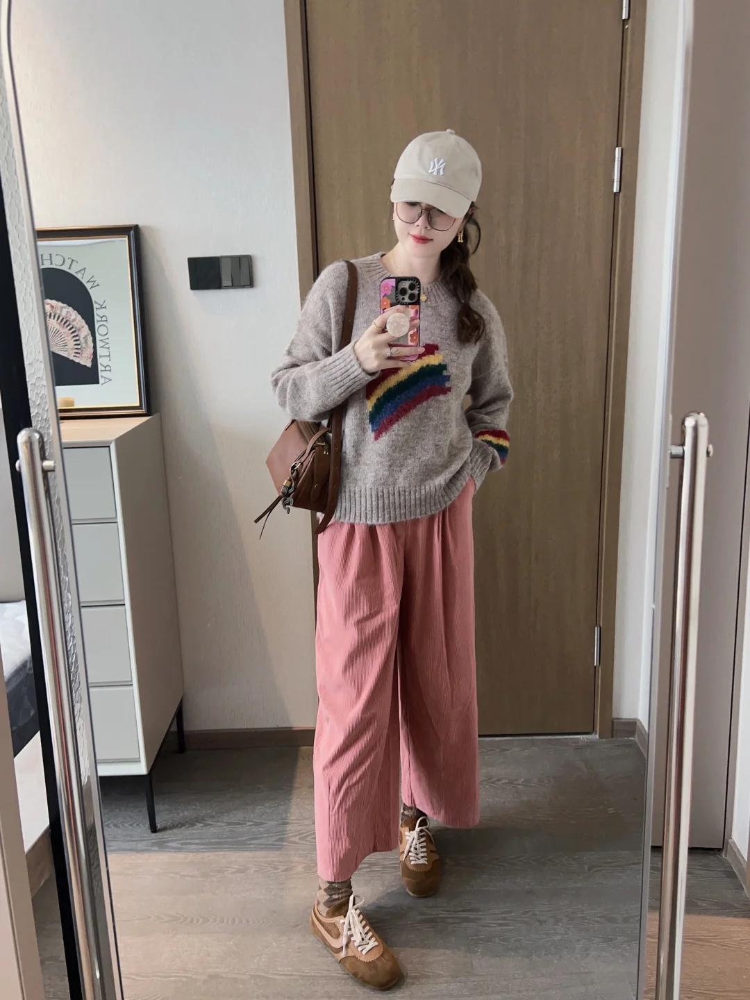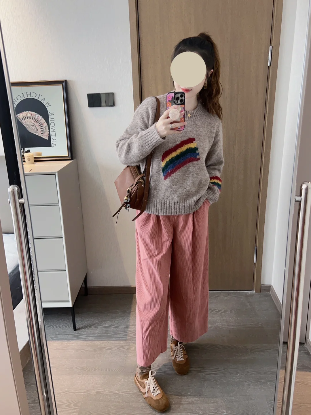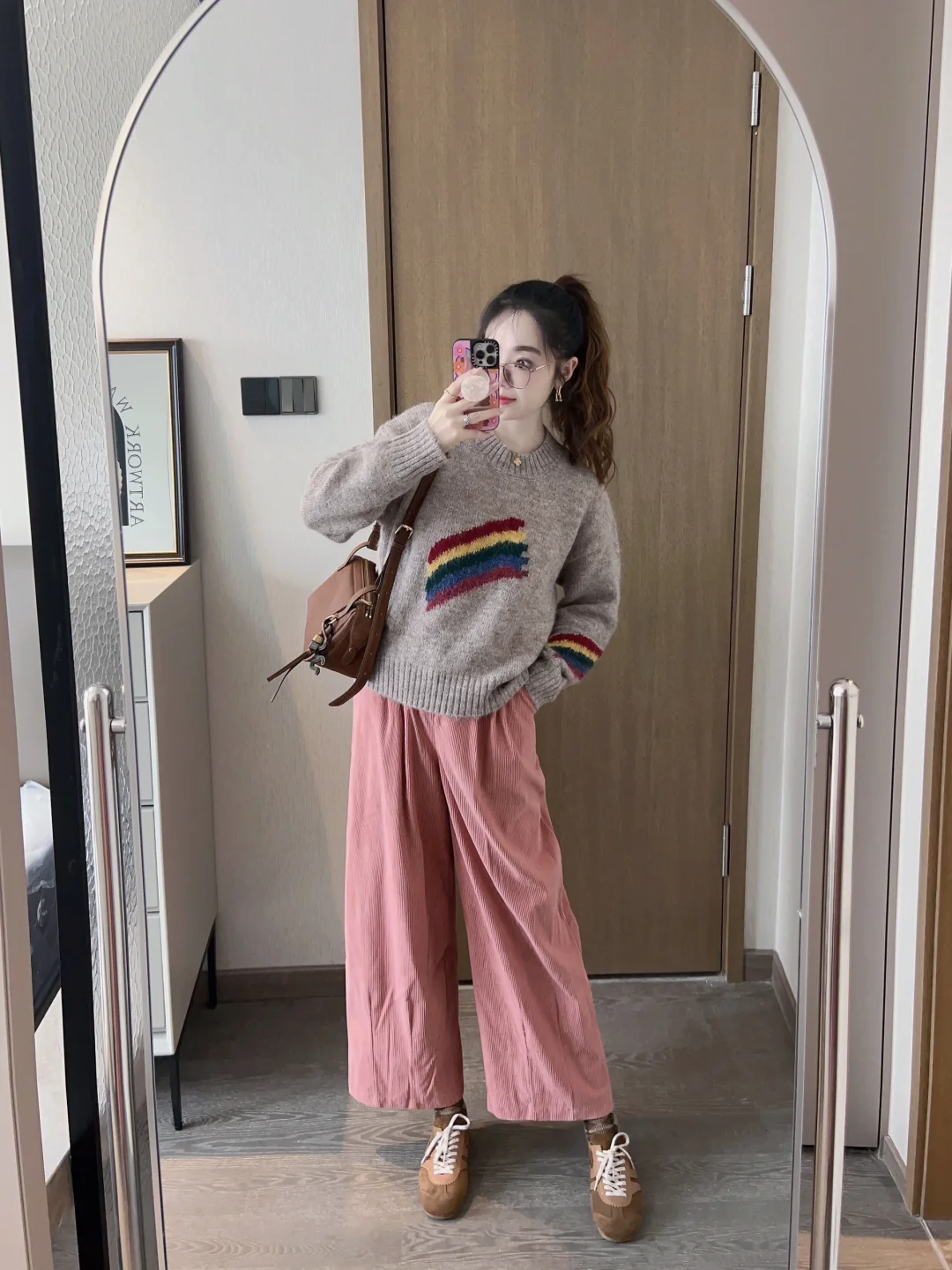 单穿毛衣➕阔腿裤,喜欢简单慵懒的秋日舒适感🍂