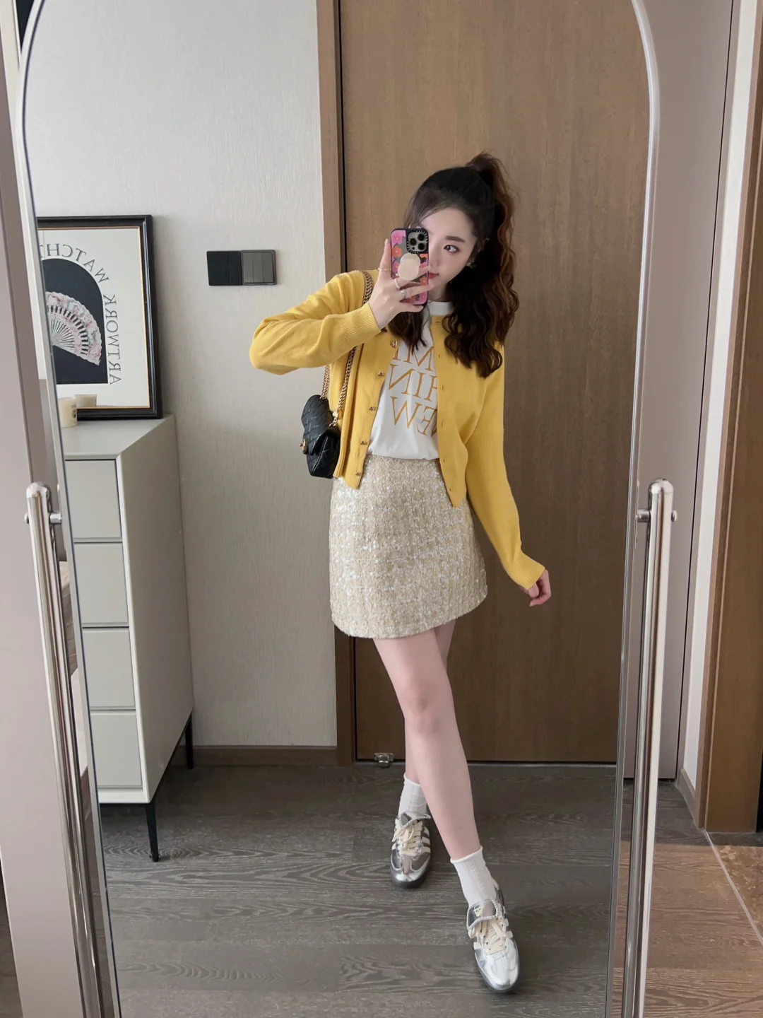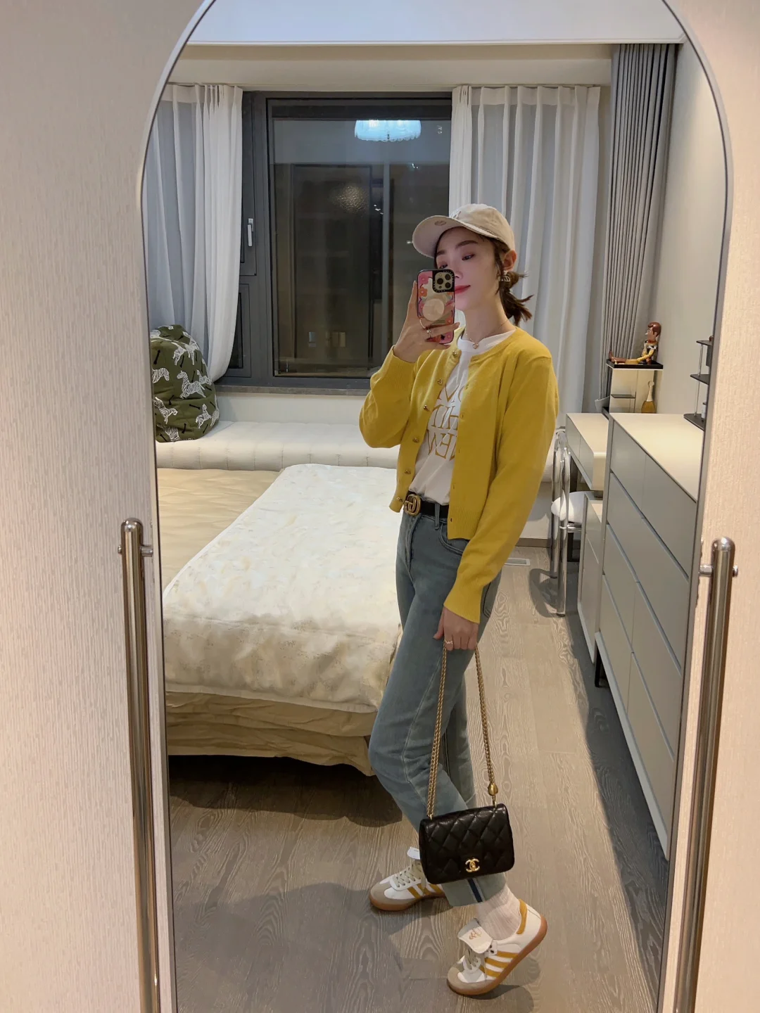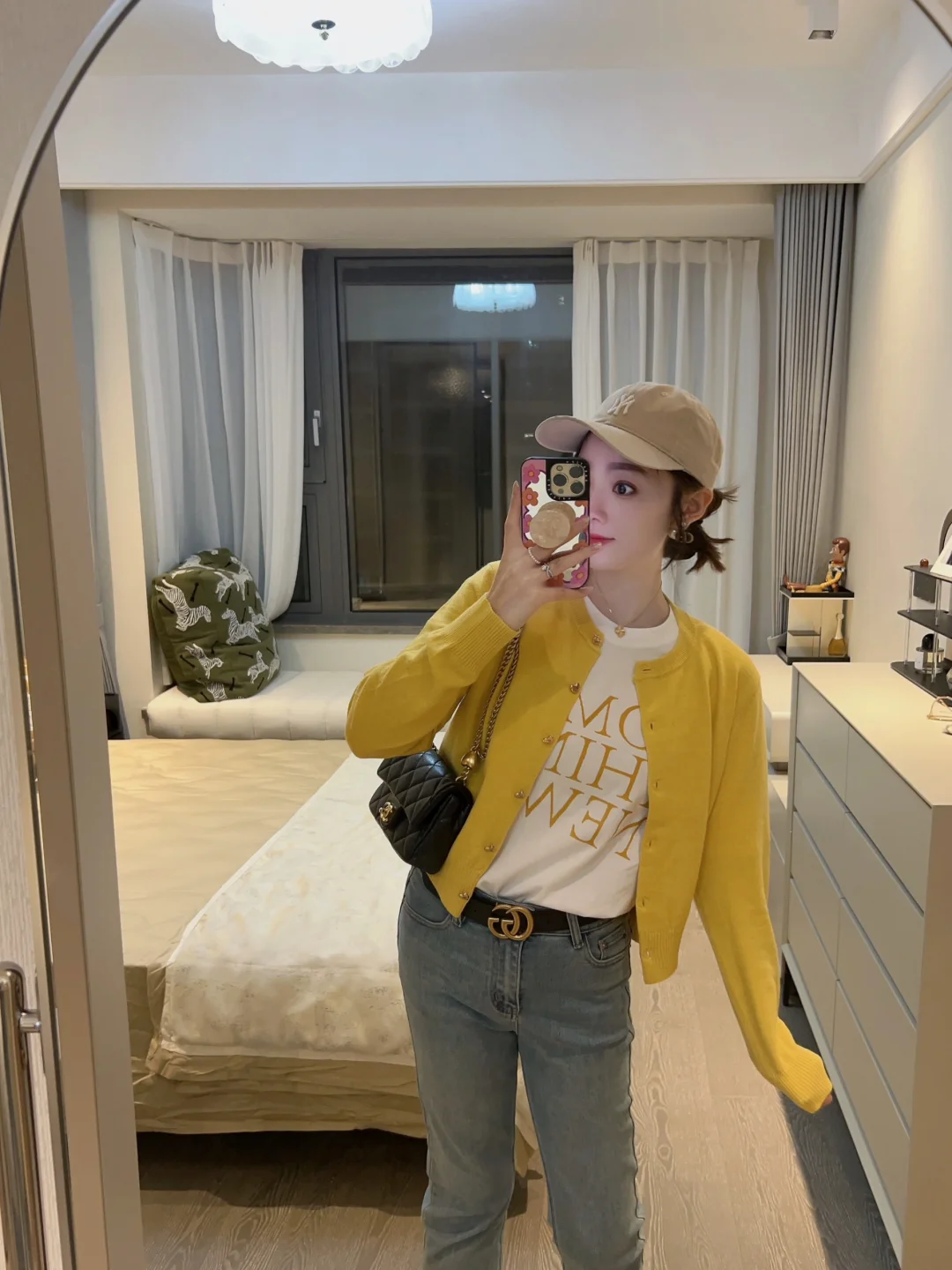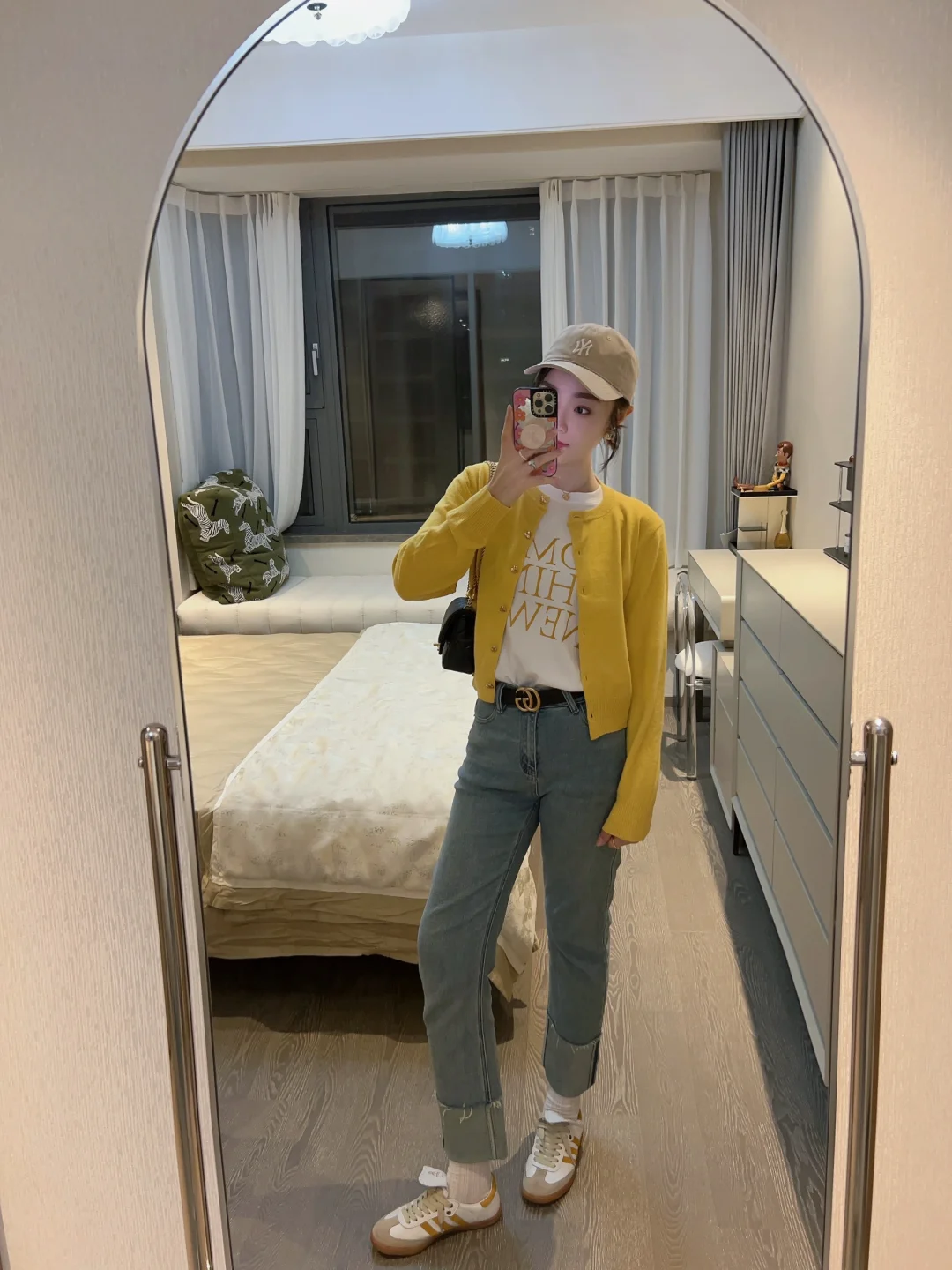 救命!姐妹们奶黄开衫配牛仔裤好看还是裙子