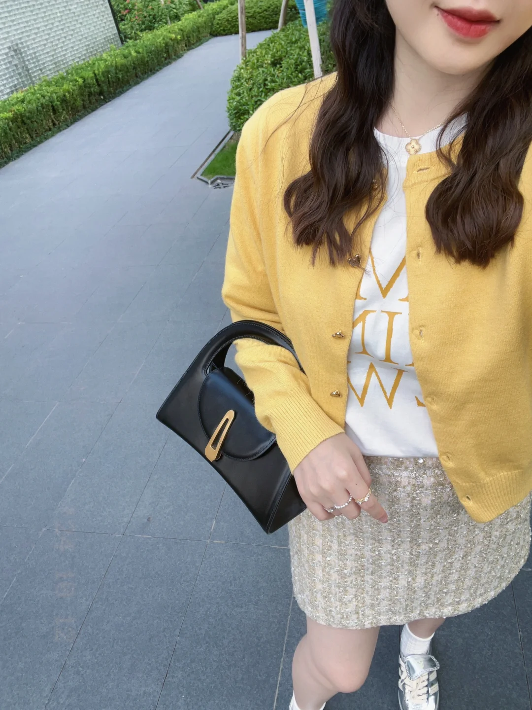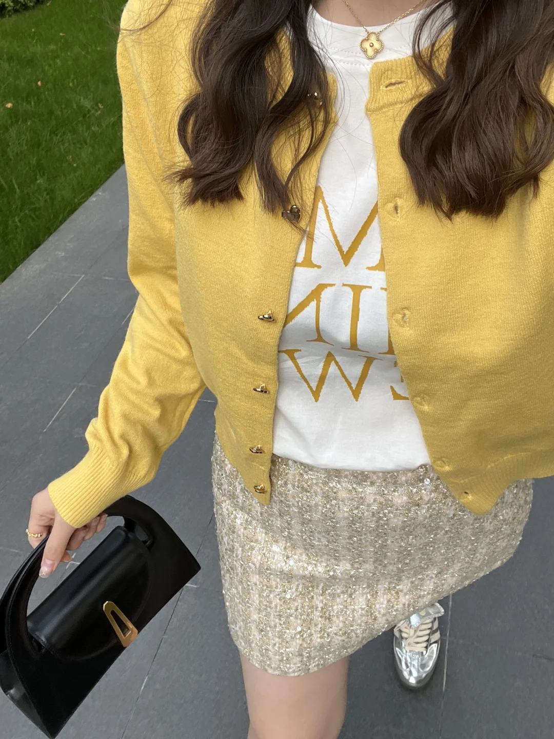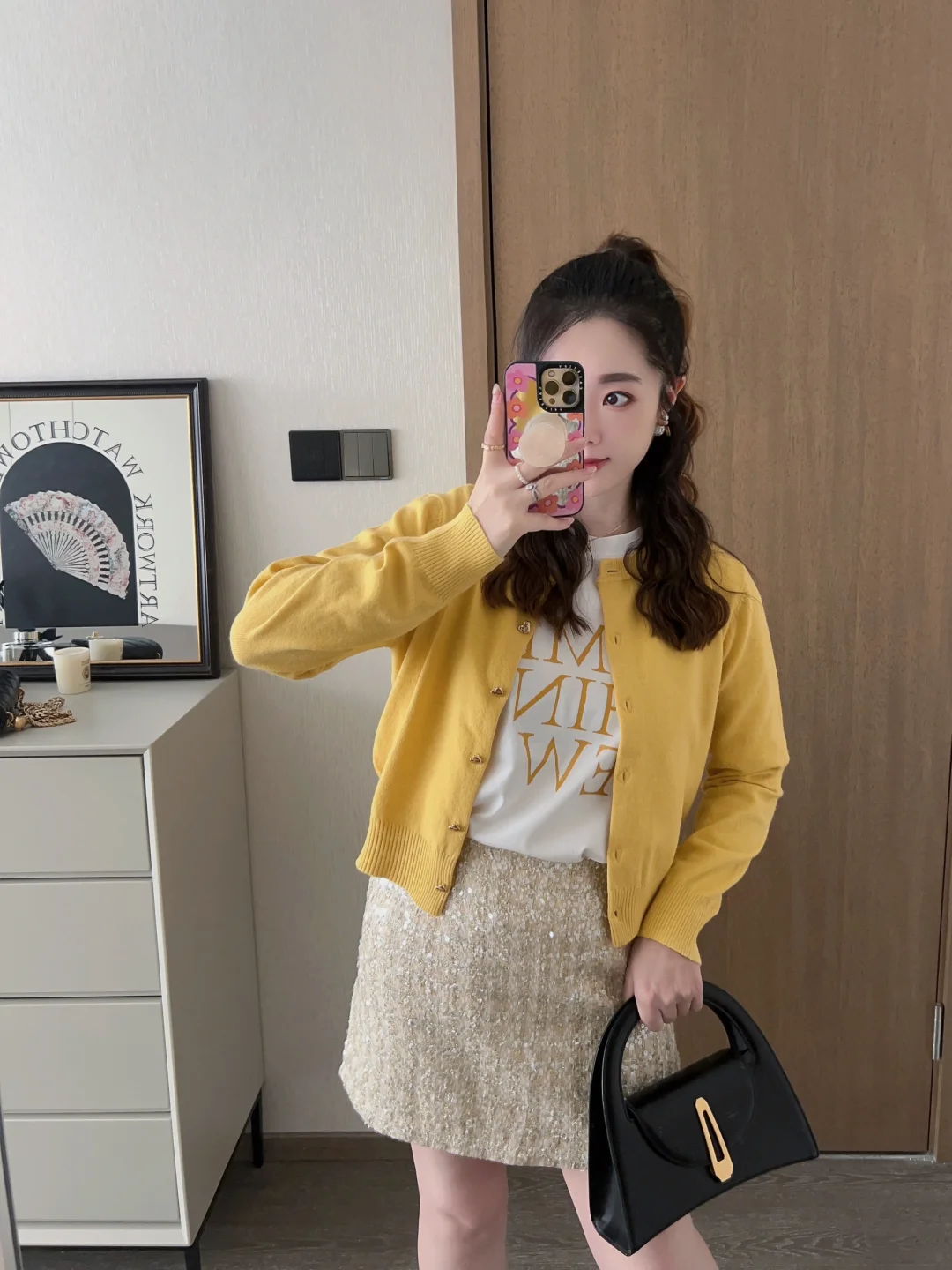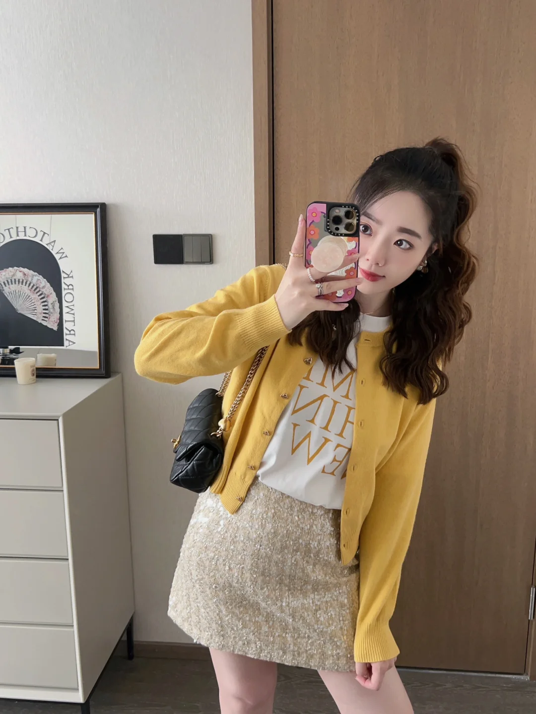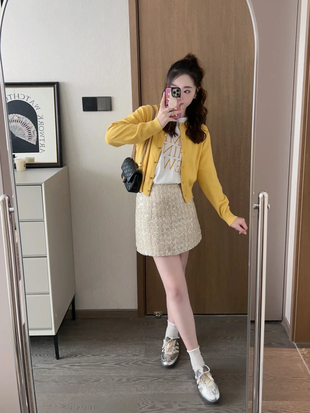 救命!姐妹们奶黄开衫配牛仔裤好看还是裙子