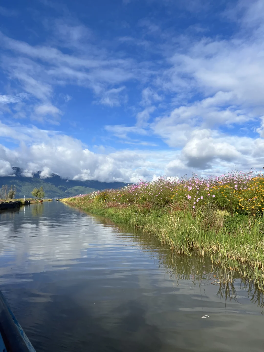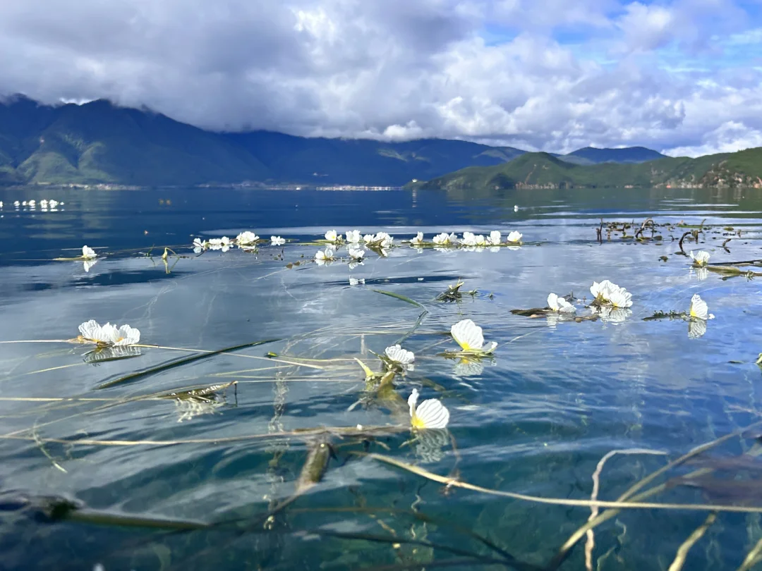 地球街溜子 天公作美,一早放晴的泸沽湖与蓝天白云交相映照仿若油画一般,还赶上了水性杨花的末班车,一朵朵小白花随波摇曳,在水面跳跃旋转,美到失语…