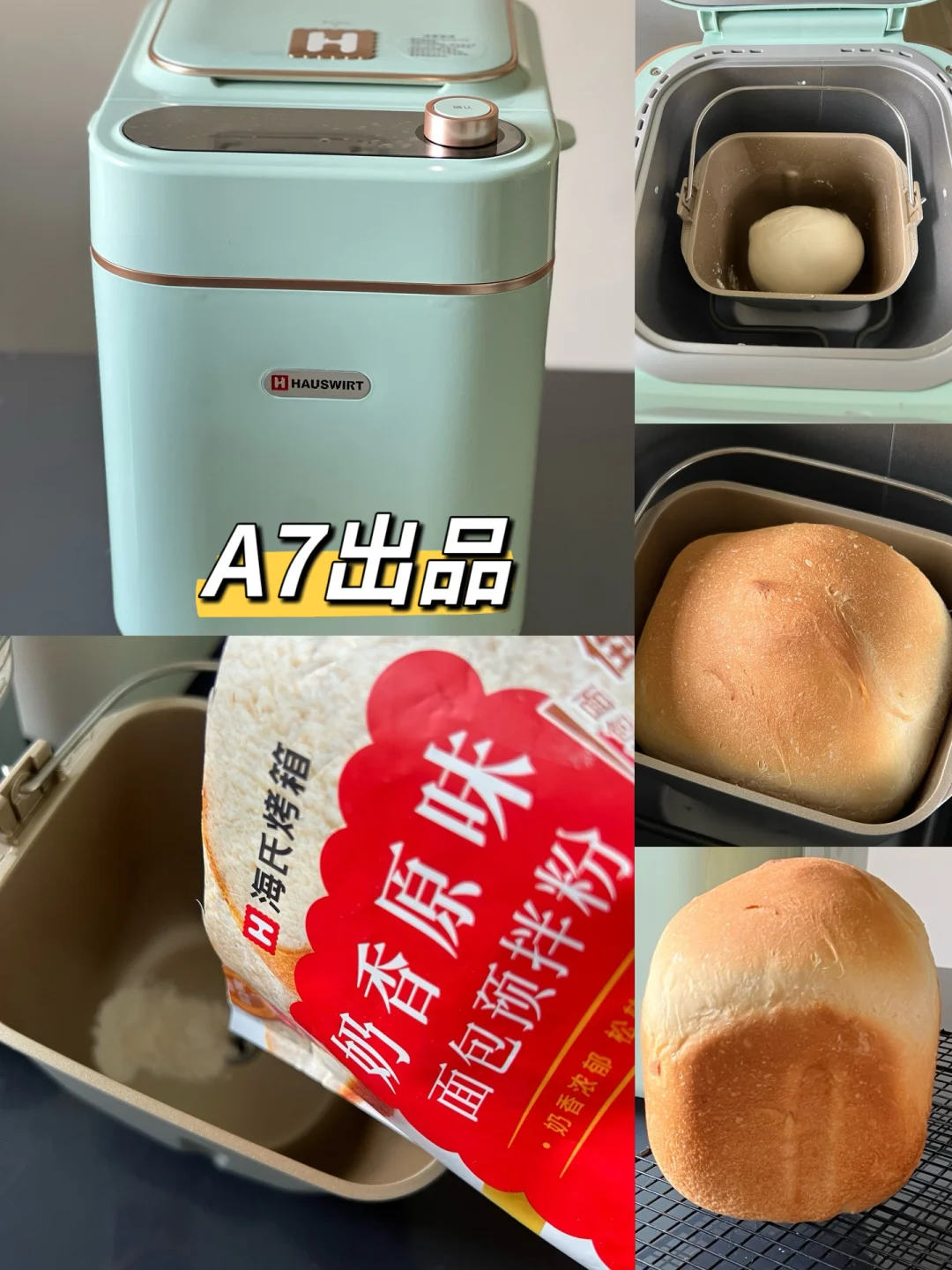 今天还体验了海氏奶香原味面包预拌粉,把预拌粉和水倒进面包桶,选择海氏A7面包机菜单1️⃣快速面包模式,妥妥的一键出炉,口感细腻拉丝,太适合懒人和上班族啦!