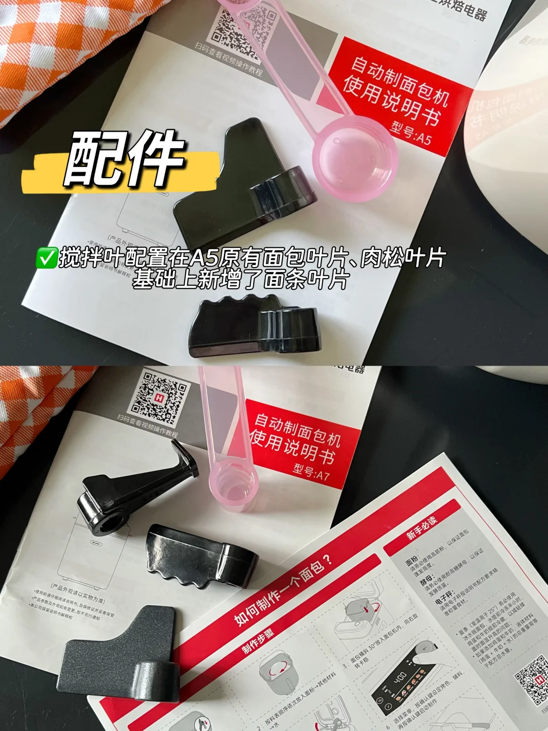 配件:搅拌叶配置在A5原有面包叶片、肉松叶片基础上新增了面条叶片