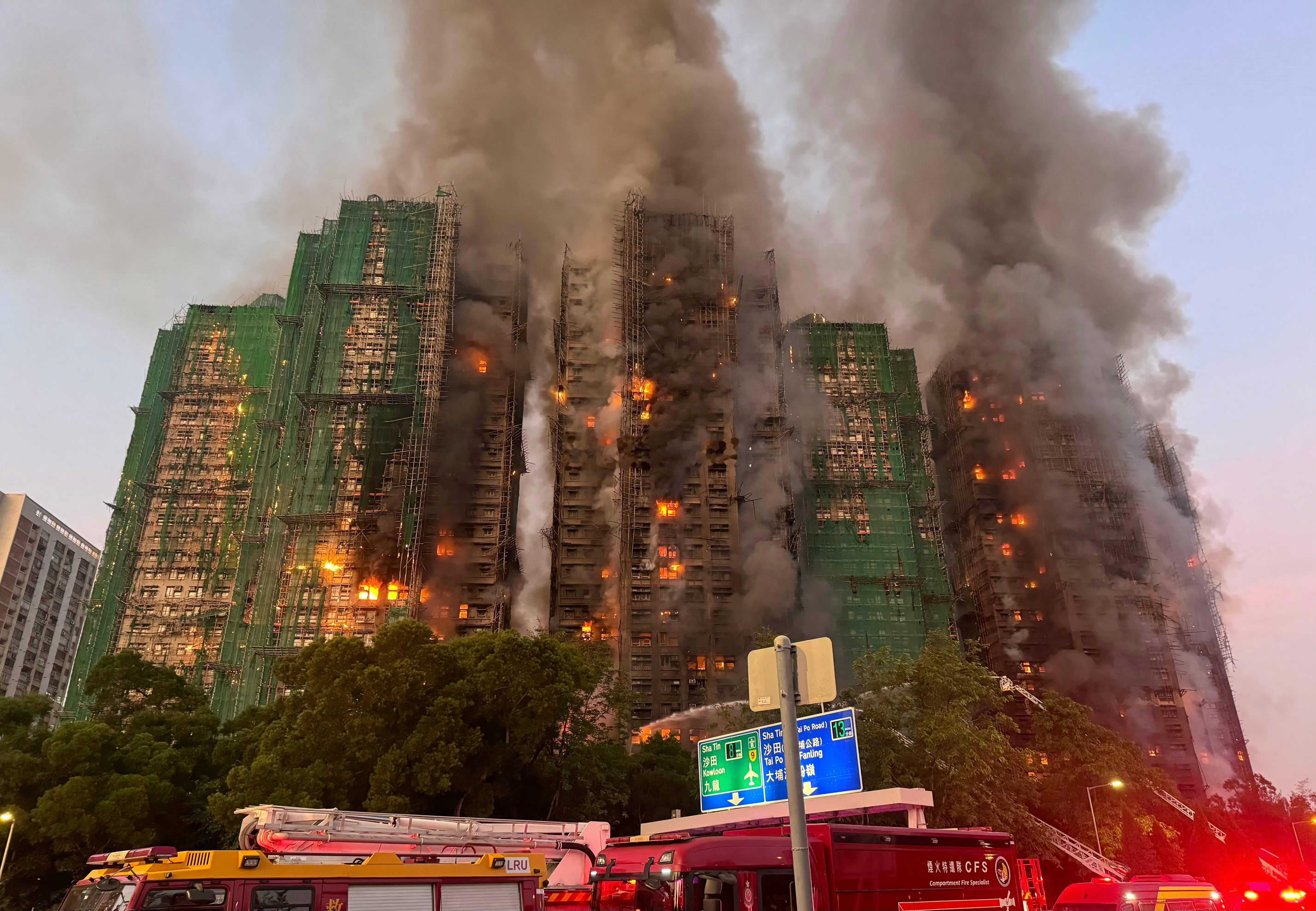 香港大埔火灾前后对比图!香港火灾已致65人遇难
