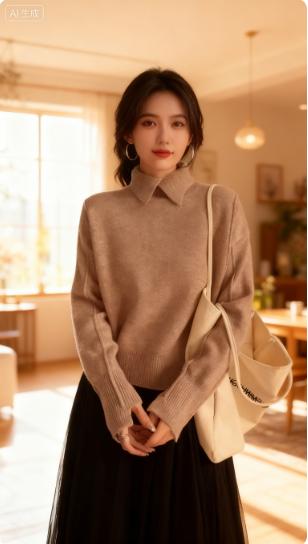 半高领羊绒打底衫女 修身羊绒打底衫女