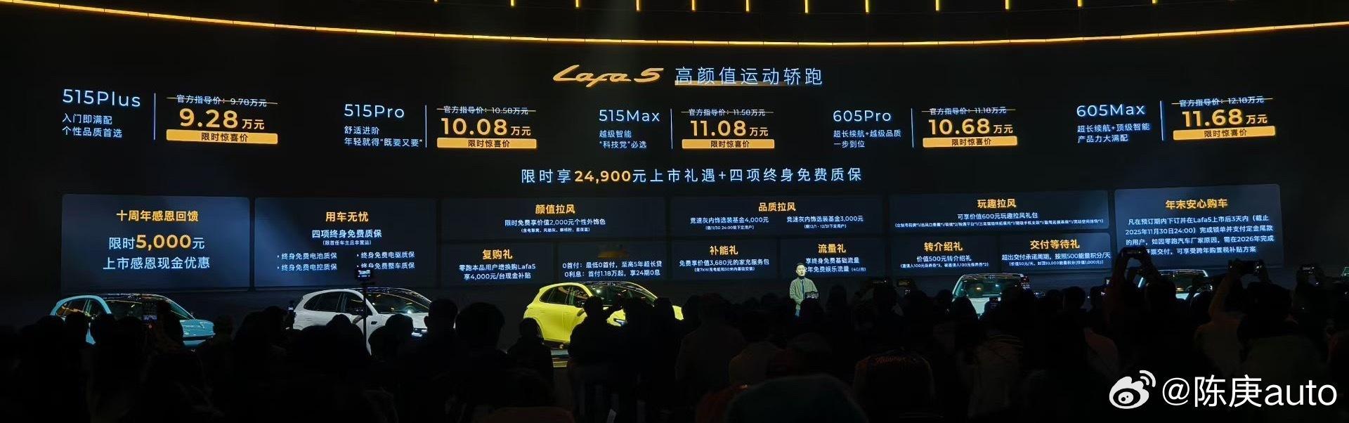 零跑Lafa 5价格来了:9.28-11.68万(限时售价),买回来改个小低趴,换套大刹车盘大点的卡钳,妥妥小钢炮即视感别忘了明年还有ultra版双电机+运动套件,那不就是电动高R期待一波价格