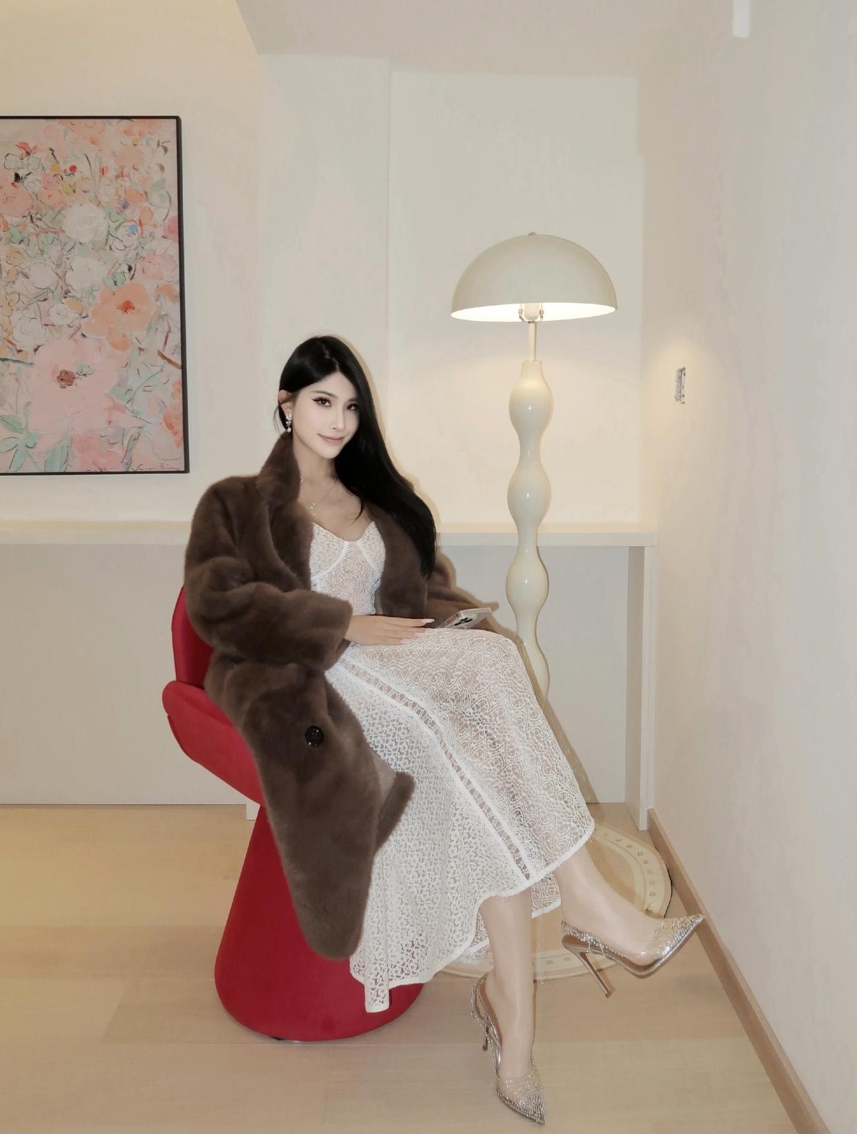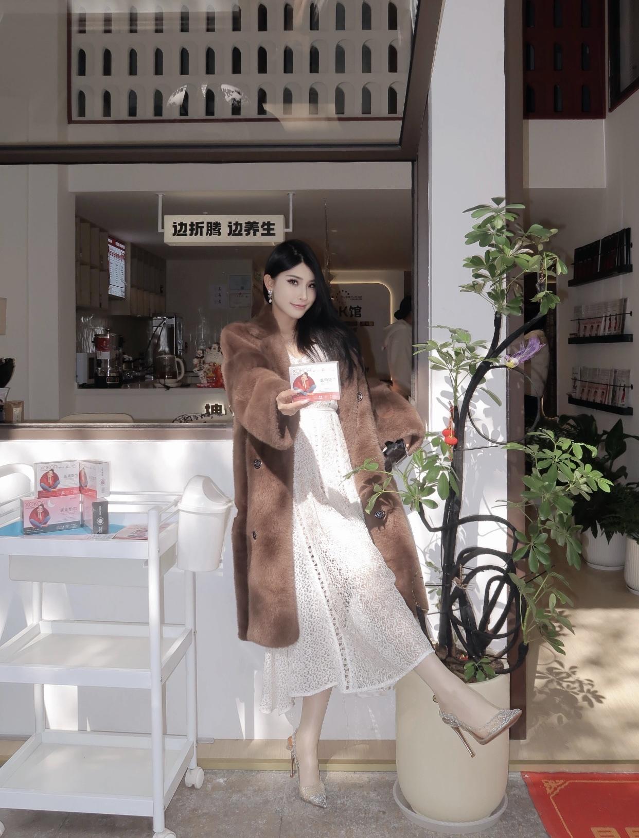 有哪些令人眼前一亮的裙装穿搭美女在店外摆姿势,周围有宣传海报。