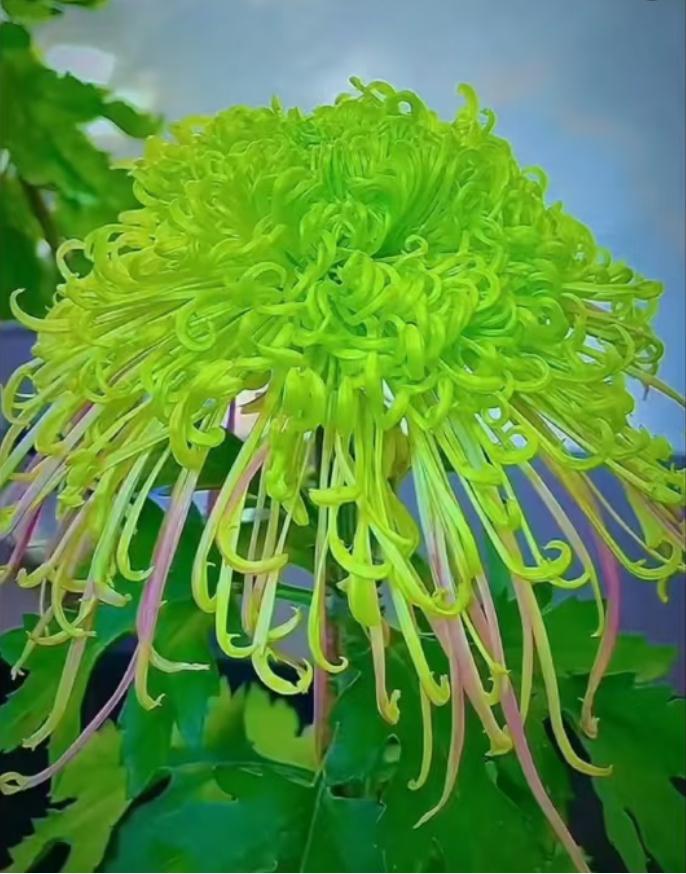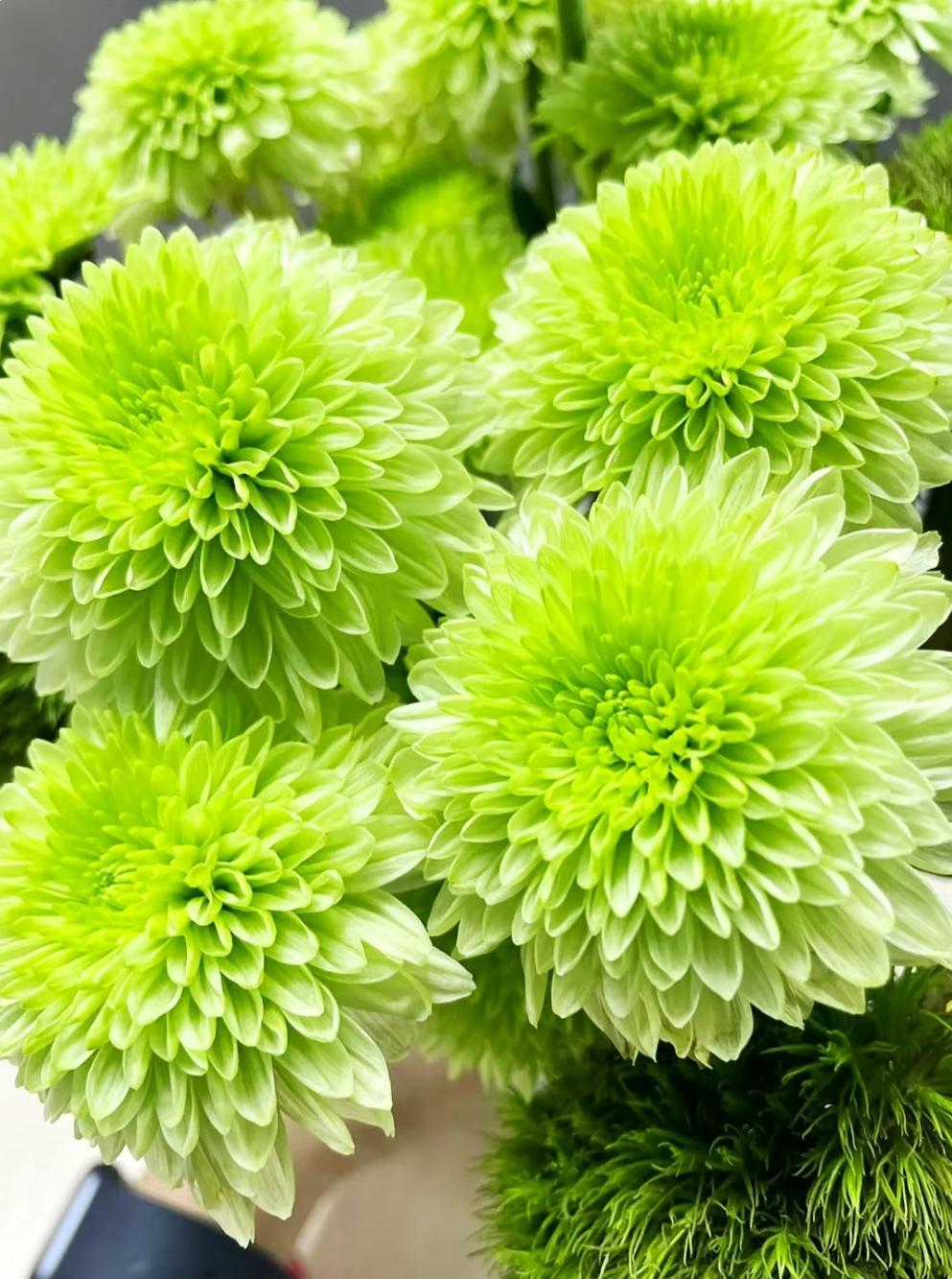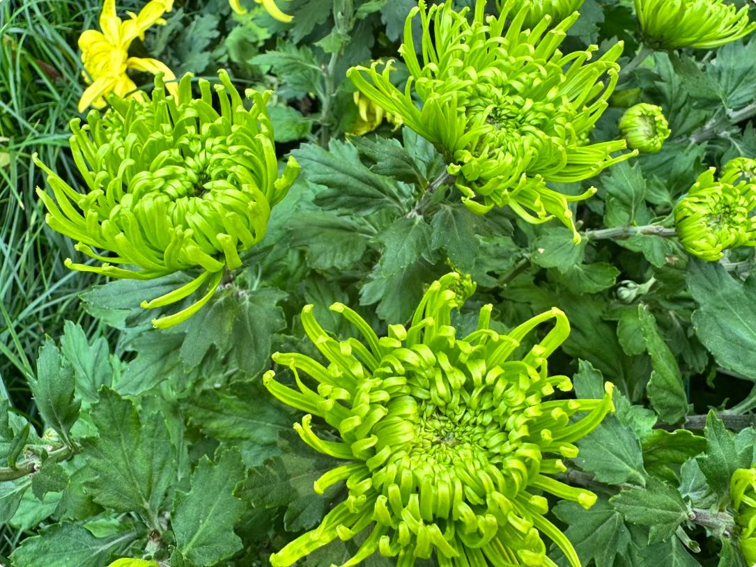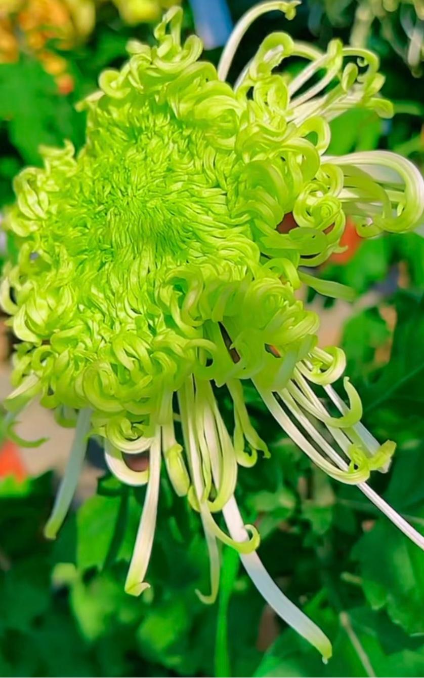 见过绿色的菊花吗 我在上海植物园菊展 见过绿色的露色菊花。 绿色菊花稀有品种漂亮 它色泽清雅,是初春嫩芽般的豆绿色。 它花瓣层叠,紧密簇拥成饱满的圆球。 它在秋日百花中,它显得格外沉静脱俗。 它在花色中常带一抹浅黄, 如阳光轻吻过的痕迹。 它不热烈夺目,却有一种内敛的仙气。 它像一件自然的艺术品, 温润如玉,独一无二。