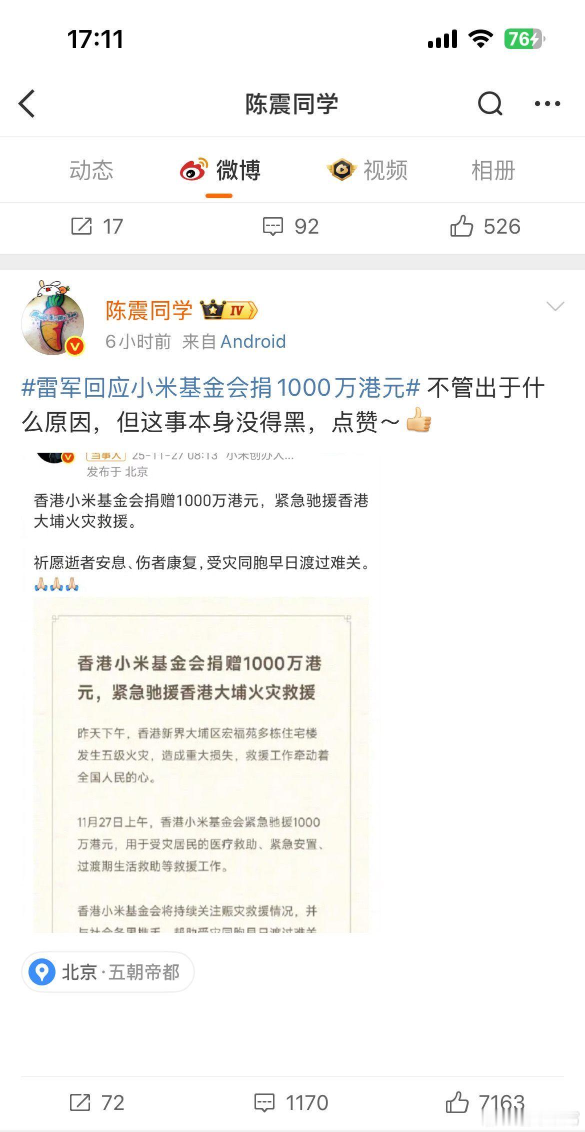 陈震 小米陈震对于小米捐款的表态。陈震表示从来没黑过小米也没有阴阳过,大家觉得这波是不是阴阳呢小米 小米汽车 雷军 陈震