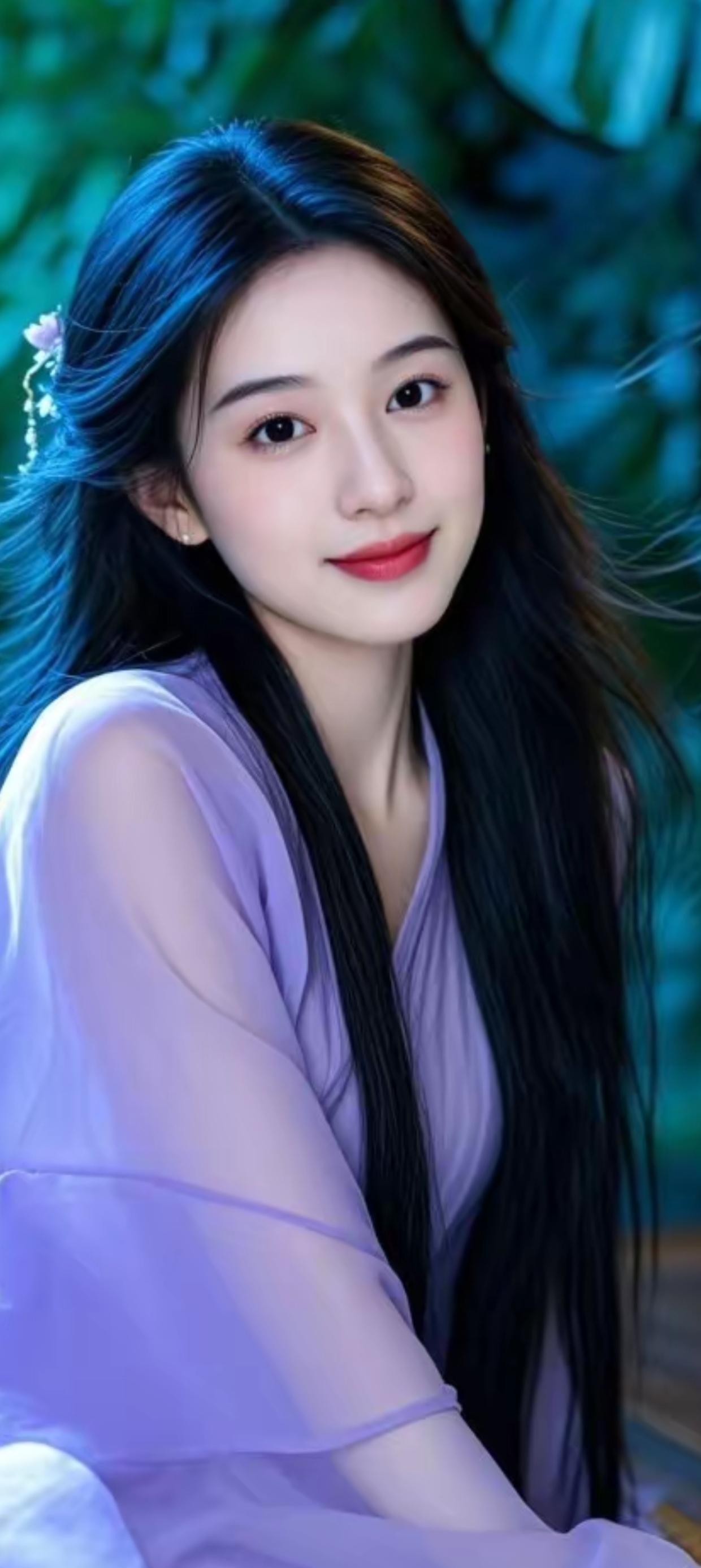 温柔古风少女,紫衣飘飘,宛如画中仙子