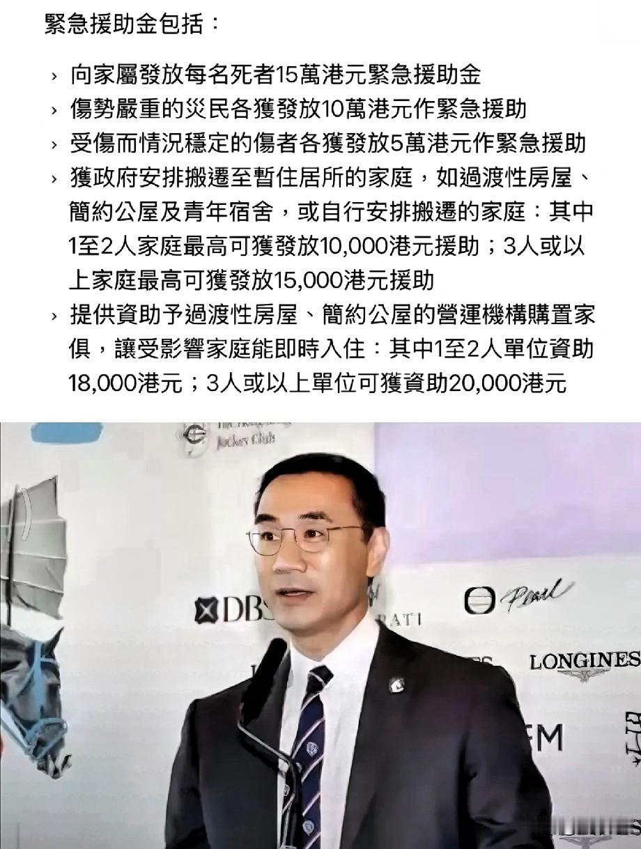 香港火灾捐款明细梳理,各界驰援太暖心 香港这次大火牵动人心,各类捐款信息繁杂,整理关键信息给大家说清:香港马会捐1亿港元驰援,堪比公益福利机构的慷慨担当,格外让人动容。马云公益基金会捐3000万港元,李兆基基金也捐3000万港元助力救灾。 众多企业和机构纷纷伸手相助,真正诠释了一方有难八方支援。 灾难面前不分身份,所有人都同心聚力送温暖。 真心盼着受灾居民能尽快安置好生活,重拾信心渡过难关,这份同胞间的守望相助最动人。 网友们说:赚的多捐的多 希望大家平安健康 老铁们,对此有什么看法,评论区留言 公益金香港 香港救灾