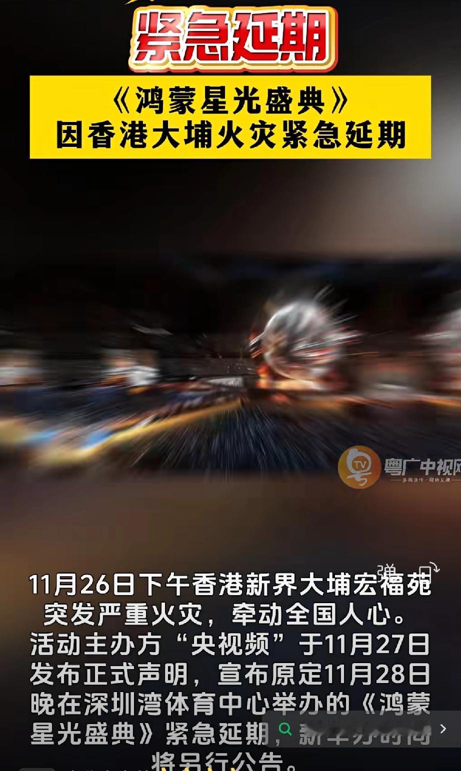 11月26日下午香港新界大埔宏福苑突发严重火灾,原定11月28日晚在深圳湾体育中心举办的《鸿蒙星光盛典》紧急延期,这个来表达对火灾逝者的哀悼与救援工作的尊重,彰显对生命的深切敬畏。 给华为点赞,我们大众的民族企业,科技领导者的风范。 华为绝对不止做了这一点点事,我觉得国家应该尽快公布华为的捐款数字,那么多平时被骂的公司都捐款了,华为怎么可能不捐,一定是太多了还没统计出来,尽快公布,为华为正名!! 华为是中国企业的标杠,是中国企业的未来,华为为了中国的利益奉献太多了,不应该也不能被人误解,点赞华为,爱华为买华为,从你做起。鸿蒙星光 华为盛典 华为鸿蒙盛典 华为星光盛典 深圳湾悦府着火 深圳湾失火 深圳星光盛典