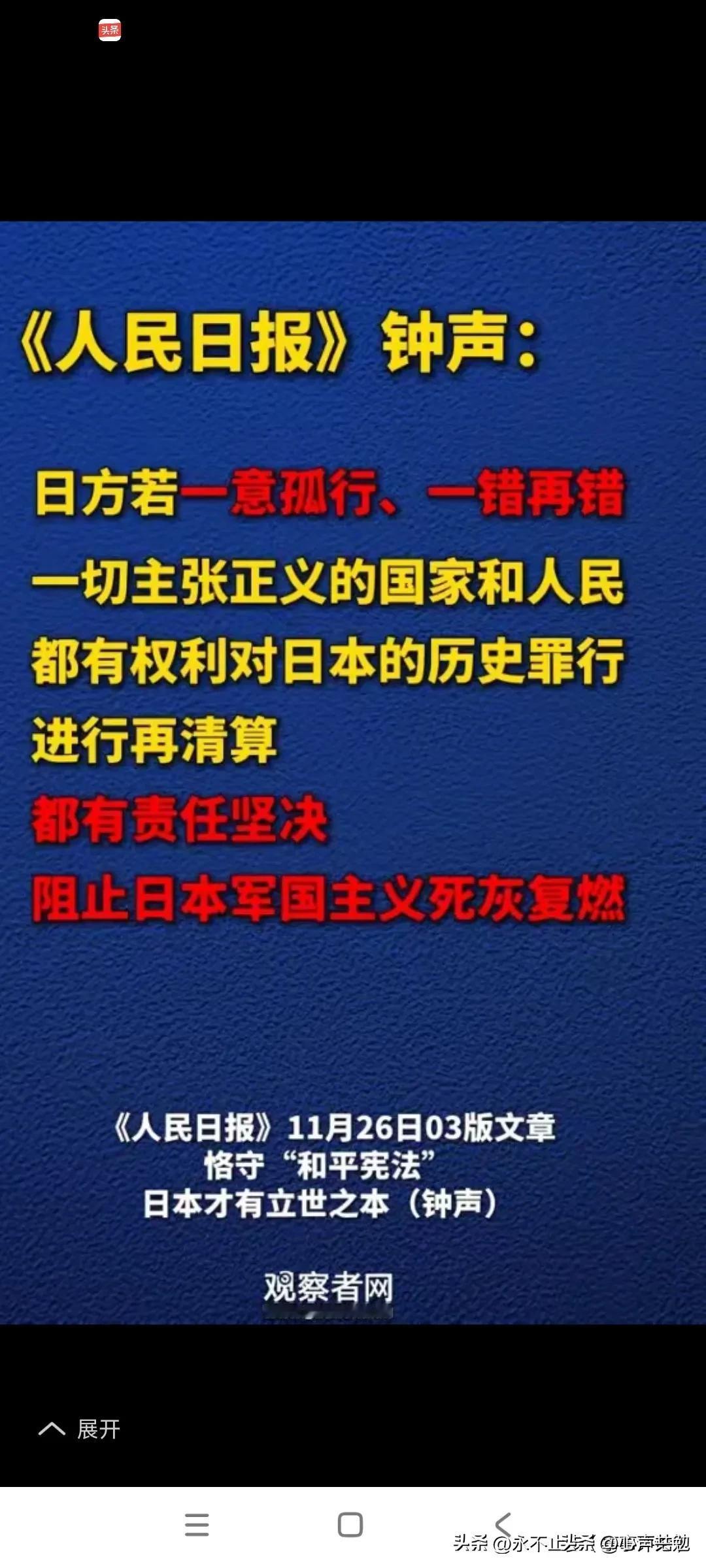 俄罗斯也怒了!在当地时间27日,俄罗斯外交部发言人扎哈罗娃表示,日本在琉球及西南诸岛部署进攻性武器,加剧地区安全紧张局势,并对邻国构成重大风险,俄罗斯保留对日本采取强硬回应的权利。面对近日日本首相高市早苗的狂妄言论,周边国家纷纷对其进行了口诛笔伐,被朝鲜称为千年宿敌,现在又被俄罗斯 称为重大风险,可以看出日本现在已经成为东亚最不稳定的因素,联合国宪章已经明确规定,如果二战中的“敌国”再次推行侵略政策,联合国会员国无需经过安理会批准,即可使用武力或其他手段予以制止。也就是说,包括中国、俄罗斯都可以不通过联合国,对日本的军国主义进行打击,正如美国哥伦比亚大学教授 萨克斯所说,日本从未真正正视其对外发动侵略战争的历史,日本军国主义抬头将带来“最大的灾难”。总之,日本现在的所作所为正在把自己推向毁灭的边缘!