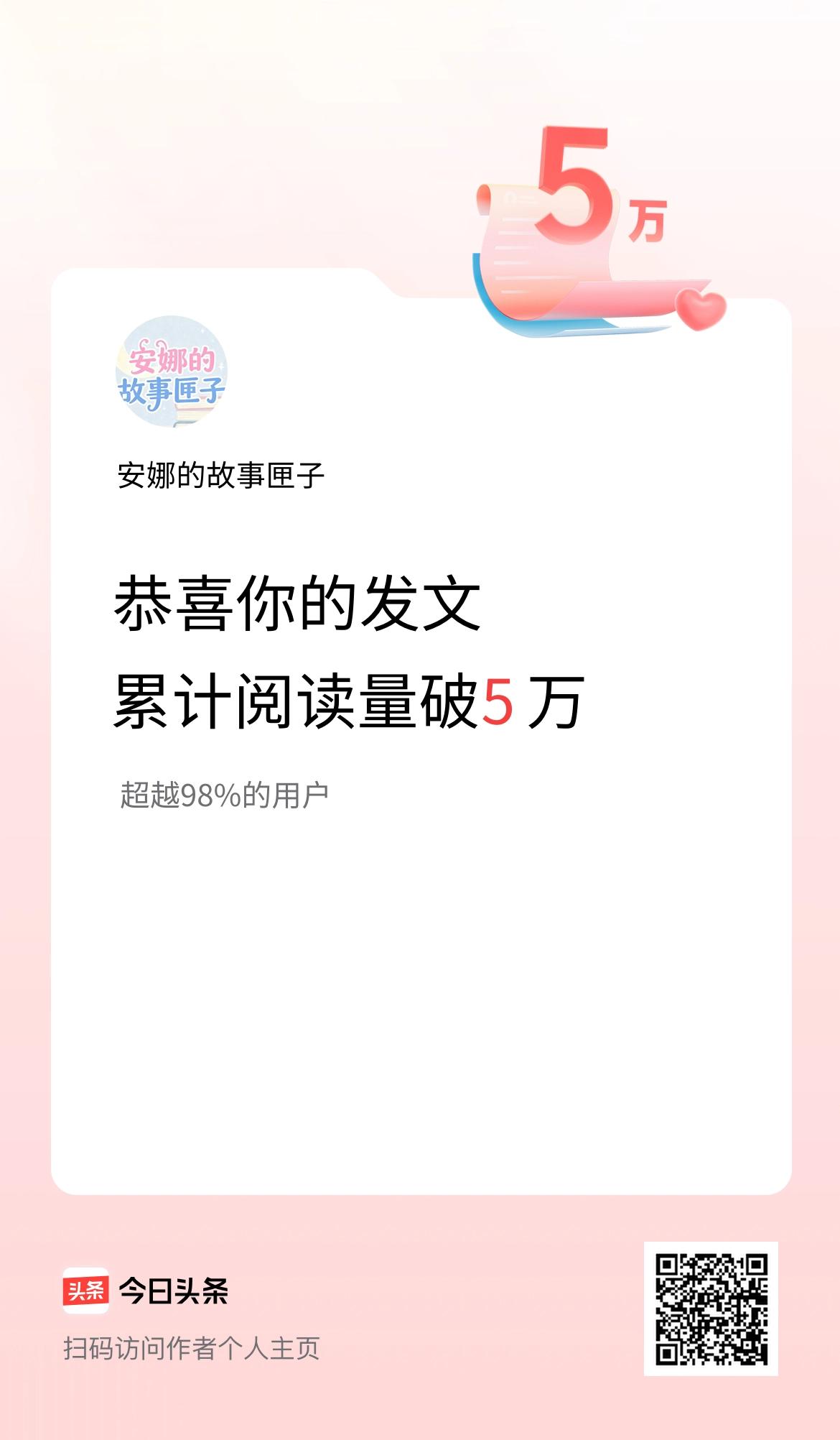 🤝我在头条累计获得阅读量破5万啦!