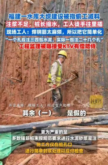 福建,一水库严重偷工减料,一根桩里3、4根钢筋,只有一根是真的,其余都是假的;一根桩里本应注入20袋水泥,现在却一袋水泥要灌20个桩孔。现场一名从业多年的工人实在看不下去了,偷偷用变声电话联系到记者,说出了实情,这个严重偷工减料的事件才被报道了出来。 在水利工程里,锚筋桩就像大坝边坡的“筋骨”,只有桩长够数、钢筋扎实、水泥灌满,才能稳稳扛住洪水冲击。 福建永安抽水蓄能电站的下水库大坝,可是国家“十四五”重点项目,设计文件里写得明明白白:锚筋桩得用12米整根钢筋焊成钢筋笼,每个孔注浆不少于20袋水泥,强度要达到C30标准,就是为了能抵御200年一遇的洪水。 可真到施工的时候,这些规矩全被抛到了脑后,70%的锚筋桩都成了“残次品”,下游3个村镇、近万名老百姓的安危,一下子就悬了起来。 其实行业里早有明确规范,《水利水电工程锚喷支护施工规范》SL377-2007里规定,锚筋桩长度误差不能超过±5%,钢筋焊接的长度得够10倍钢筋直径,注浆还得用压力设备,确保孔里没有空隙。 但承建这个工程的中国水利水电第三工程局有限公司,干的事完全背离了这些要求。 设计12米长的锚筋桩,实际最长的才5米,最短的连2米都不到,长度差了一大半。 本该是三根完整钢筋焊成的钢筋笼,最后变成一根达标钢筋配两根短截的次品,连好好焊接都没有,徒手一拔就晃悠; 更要命的是,施工方还偷偷把注浆管给取消了,这可是核心部件,没有它就没法进行二次补浆,桩体和山体岩土根本粘不到一起,相当于在边坡上插了一根根“空心针”,看着像那么回事,其实根本不顶用。 按理说,监理方浙江华东工程咨询有限公司该守住最后一道关,可他们反倒成了违规操作的“保护伞”。 记者调查时拿到的视频显示,施工方经常请监理人员吃饭,还在KTV安排了有偿陪侍,每次花的钱都超过5000元,这些费用最后都算进了工程的“管理成本”里。 监理日志更是瞎写一气,明明没检测桩长、注浆量也不够,日志上却写着“全部符合设计要求”,甚至连第三方检测报告的签字栏都敢伪造。 一开始记者质疑的时候,监理方还强硬否认,说“施工全程都按规范来”,等记者拿出视频证据,他们才改口说“个别环节有点疏忽”,可具体哪里违规、怎么整改,却死活不肯多说。 好在事件曝光后,福建省水利厅很快成立了专项调查组,直接进驻工地,对已经完成的600多根锚筋桩进行全面检测。 现在已经拆除了12根严重不合格的桩体,还要求施工方暂停后续施工,赶紧提交整改方案。 与此同时,纪检监察部门也介入了,重点查施工方和监理方之间有没有利益输送,目前已经有3名监理人员被暂停执业资格,正在接受调查。 福建这起事件能被曝光,多亏了工地工人老陈的坚持。 去年刚进这个项目部的时候,他特意核对了设计图纸和施工规范,看到初期施工都按标准来,还主动跟工友们讲解锚筋桩的加固原理,觉得这是个能让人放心的工程。 可到了七月,工头突然说要“简化流程”,老陈当场就反对,还写了书面意见提交给项目部,可最后石沉大海,没人理会。 眼看着违规操作越来越严重,老陈实在坐不住了,他偷偷记下每一批锚筋桩的施工日期、钢筋规格、水泥用量,还拍了37段施工视频,整理成了详细的举报材料。 为了躲避工地的监控,他特意选在凌晨5点,骑电动车跑了20公里到附近的乡镇,找了个公用电话亭,变着嗓子跟记者反映情况,还把自己记录的违规台账也提供了出去。 记者暗访的时候,老陈又冒着风险,带着记者去看了3处还没被喷浆覆盖的“空心桩”,用钢卷尺当场量了桩长,还展示了钢筋松动的情况,让记者亲眼看到了施工乱象。 事件曝光后,老陈收到了匿名的威胁短信,但他没退缩,还是配合调查组提供了更多证据。 现在他已经被当地水利部门聘为“工程质量社会监督员”,继续发挥自己的专业作用。 面对质疑,承建方水电三局曾辩解,说缩减桩长、少用水泥是“为了赶工期”,取消注浆管是“设计变更还没批就先施工了”。 可记者查了《水利工程设计变更管理暂行办法》才知道,涉及工程安全的重大设计变更,必须经过项目法人、设计单位、监理单位、主管部门四方签字批准才能实施,水电三局的做法,完全是违规操作。 水利专家算了一笔账,按现在这些桩体的质量,一旦遇到50年一遇的洪水,大坝边坡滑坡的概率超过60%。 工程质量从来都不是小事,它是底线,更是老百姓的生命线。 希望专项调查组能一查到底,不光要追究施工方、监理单位的责任,还得深挖项目审批、资金使用这些环节有没有问题,把监管漏洞彻底堵上。 更重要的是要建立长效机制,让工程质量终身追责制真正落到实处,让每一个干水利工程的人都明白,在生命安全面前,任何一点利益算计都不值一提。