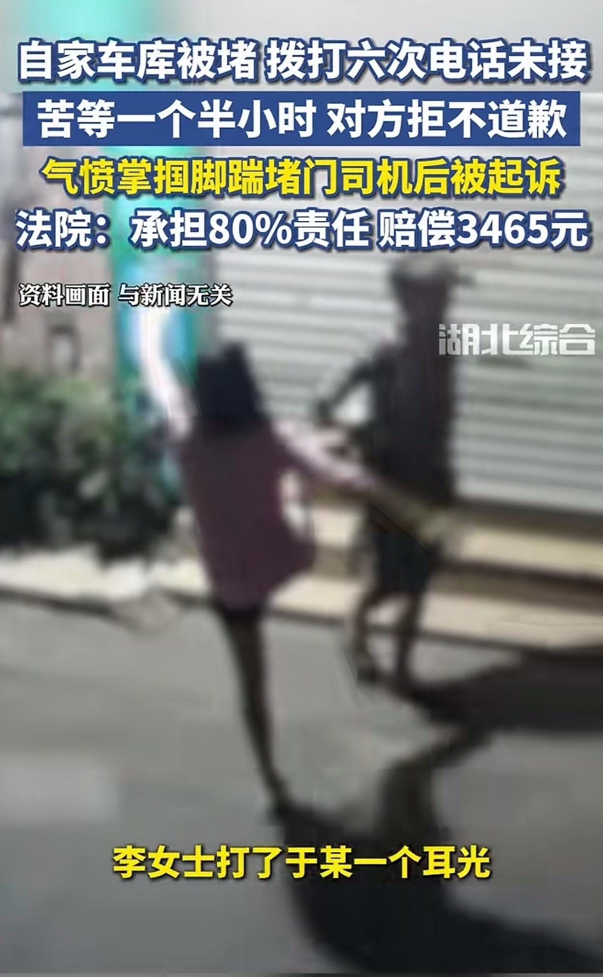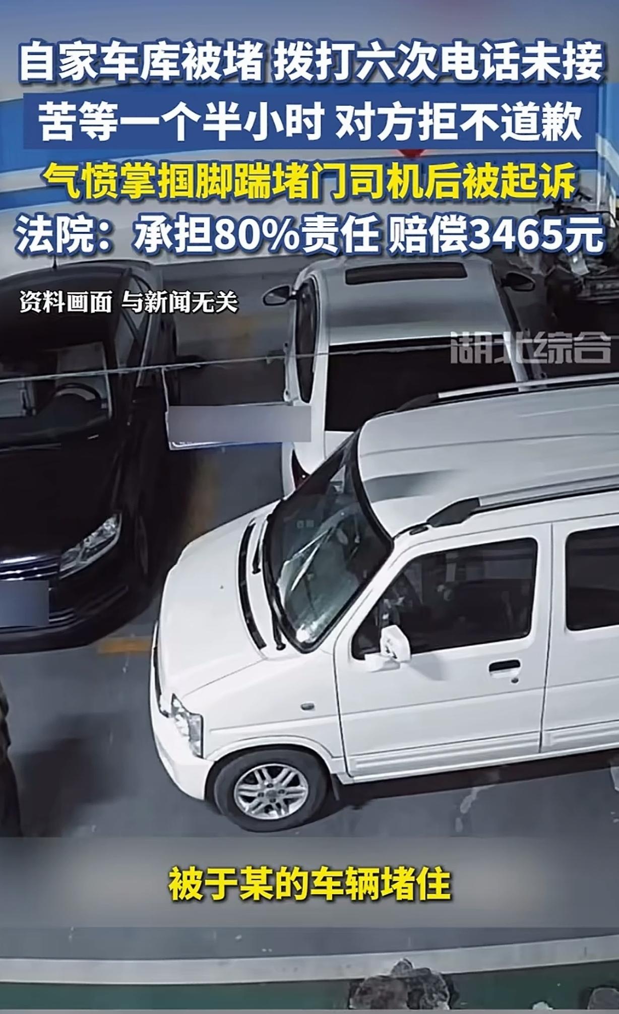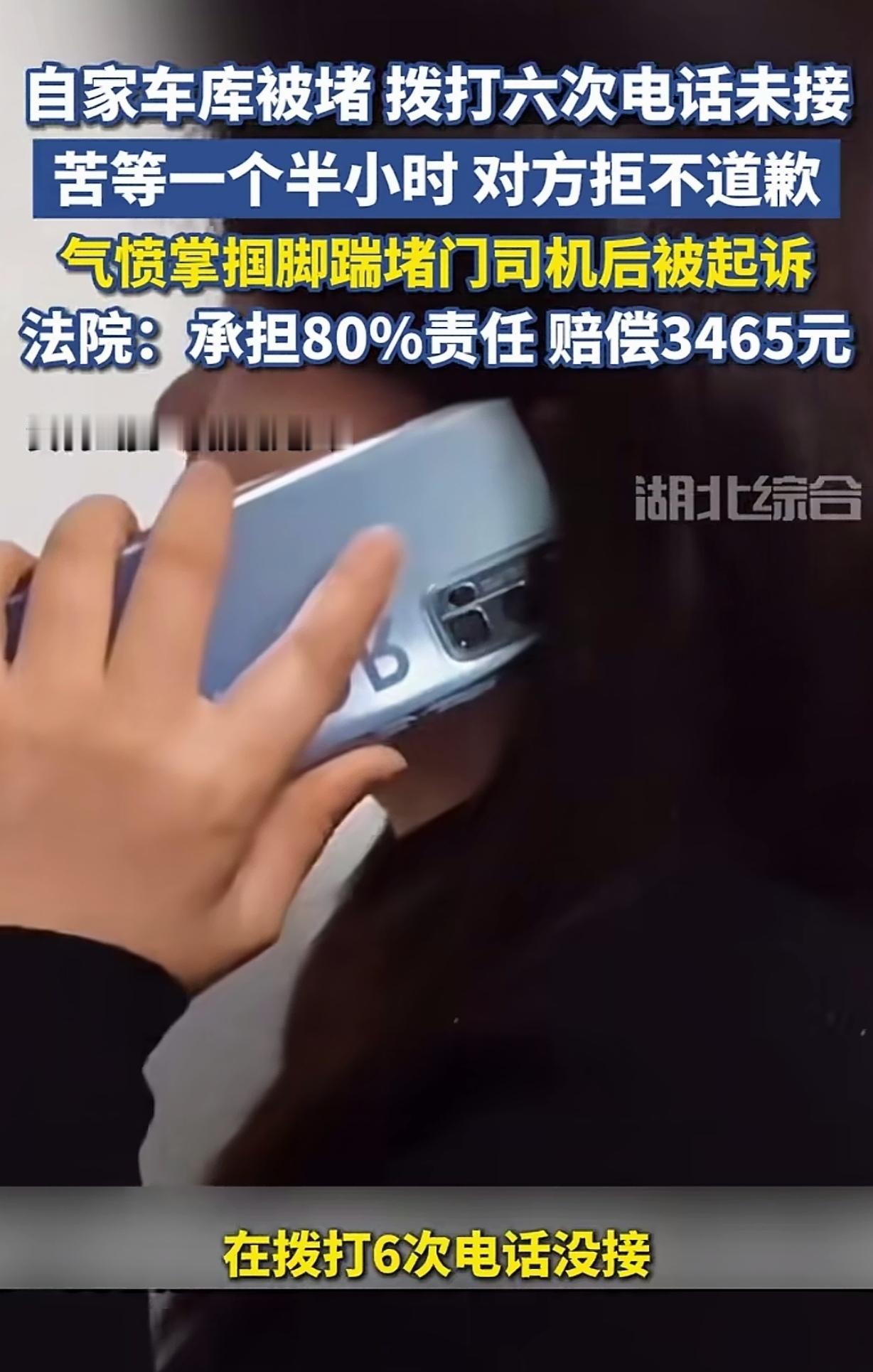 辽宁大连,一女子家车库被一辆车堵住,她无法停车,她给男车主打了6个电话都没接,无奈之下,只能通过交警联系上男子,可万万没想到,她苦等一个多小时,男子才过来,还态度嚣张,拒绝给女子道歉,女子忍无可忍,踹了男子一脚,女子不但被拘留3日,还被男子告上法庭,法院竟判决女子承担80%的责任,赔偿男子3465元,可把女子气的不轻。 2025年6月8日晚,李女士准备开车出门,来到地下车库傻眼了,她发现自己的车,被一辆车堵在了车位里。 还好,堵她的车里有车主电话,她以为一打电话,对方就会来把车挪走。 不料,李女士打了6个电话,对方竟然不接,李女士有事要出门,她心急如焚,气不打一处来。 在她看来,她打一两个电话对方不接,可能是手机静音,或者去忙别的了没听见,但连续打6个电话都不接,那就是故意为之了。 车主肯定知道这是让他挪车电话,充耳不闻,你把人家的车堵住了你不知道吗?既然这么不道德,干嘛还留电话呀? 万般无奈下,女子只能求助于交警,终于联系上了车主于某,这回,李女士认为于某肯定立马来挪车了吧? 可让她大跌眼镜,怒不可遏的是,她又等了一个多小时,于某才不紧不慢的来了。 此时的李女士,早已经怒火中烧,她坚决让于某给自己道歉。 按理说,于某说几句好话,就能浇灭李女士心里的怒火,可他不但不道歉,态度还特别嚣张。 于某觉得,李女士一个劲的催,让他很心烦,虽然他没及时过来,但毕竟还是来了,把车挪走就好了呀,咋还那么矫情,凭啥道歉? 李女士的愤怒无以复加,于某堵住她的车有错在先,她有急事在身需要用车,可给他打电话一开始却不接,要不是交警帮忙,她都不知道怎么办好了。 于某让自己等了这么久,耽误了自己的事,连句歉意都没有,是可忍孰不可忍。 于是,李女士一时没控制住自己,上去就踹了于某一脚,她一个女人,力气能有多大,于某却顺势躺在地上,开始碰瓷,还报了警。 最终,李女士因殴打他人,被拘留3日,她这个窝火带憋屈呀,可不料,于某还是不放过李女士,竟然把她告上法庭,索赔医药费,交通费。 李女士积极应诉,可最终的判决结果,让她懵圈了,法院竟然判决李女士承担80%的责任,赔偿于某3465元,她真是不甘心呀,觉得自己比窦娥还冤。 李女士把车停在自家车位,被于某的车堵得死死的,打电话不接,求交警帮忙后还苦等一个多小时,换谁不得急得冒火? 结果于某来了不仅不道歉,还态度嚣张,这搁谁心里能咽下这口气?李女士一时没忍住踹了一脚,结果自己被拘留3天,还得赔对方3465元,真是让人直呼“离谱”! 要说堵车这事儿,于某肯定不占理。你堵了别人的车位,留了电话就得接啊,不接电话就是故意给人添堵。 就算有事耽误了,来了说句“不好意思”也能化解矛盾,可他倒好,还觉得李女士“矫情”,这态度简直是把别人的时间当儿戏。 李女士急着出门,被这么一折腾,换谁都得炸毛。 可话说回来,李女士这一脚踹得也确实冲动了。法律可不讲“谁气谁有理”,动手就是不对。 于某虽然不地道,但李女士这一脚下去,反而把自己从“受害者”变成了“加害者”,拘留、赔偿都来了,真是“赔了夫人又折兵”。 这事儿也给大家提了个醒:遇到糟心事,千万别急着动手。有理也得讲法,冲动是魔鬼,一时的气愤可能让自己陷入更大的麻烦。 要是李女士当时能冷静点,录个像、留个证据,或者找物业、交警帮忙,说不定结果就不一样了。 最后想说,做人还是得讲点良心和礼貌。堵了别人的车,道个歉、挪个车,天经地义的事儿,何必闹得这么难看? 希望大家引以为戒:遇事多一份理解,少一份冲动。 还是我们法律不健全,也是不健康,你凭什么堵门,如果堵门三次电话不移开,应该由官方强制拖走,车辆损坏自负,在健全的法律面前,人人平等。 打人不对,可故意堵车库门的行为怎么就没有责任吗?这样的判决有点难说通,最起码也应该判同等责任,原因是故意堵车库门,而且拒绝认错道歉,这样才符合前因后果。 《民法典》第1165条规定:行为人因过错侵害他人民事权益造成损害的,应当承担侵权责任。 《民法典》第1173条规定:被侵权人对同一损害的发生或者扩大有过错的,可以减轻侵权人的责任。 李女士的“踹人行为”是于某人身损害的直接原因,她主观上因愤怒“故意”动手,符合“侵权责任”的核心要件,有过错、有损害、因果关系。 而于某“堵车库门”“不接电话”“迟到不道歉”的行为,是矛盾的“诱因”,对损害发生有次要过错,但李女士的“踹人行为”是损害的根本原因,过错程度远大于于某。 因此法院依照法律,认定李女士承担80%主要责任,赔偿3465元,既否定了“以暴制错”的合理性,动手即侵权,也考量了于某的过错,减轻20%责任。 于某“缺德”但未违法,李女士“动手”却违法,法律不看“谁更气人”,只看“谁的行为直接造成损害”。 关注@灋律盐究员 学法辩是非,用法止纷争。