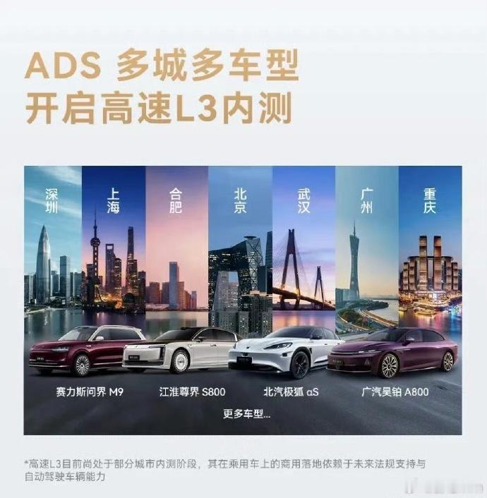 可以开始内测了豆包说:“这句话是在讲 L3 级自动驾驶(常说的 “高速 L3”)的当前进展和商用限制~现状:目前它只在部分城市的市区范围内小范围应用,还没拓展到更广泛的场景;商用前提:它要想在普通乘用车(比如私家车)上实现商业化落地(比如车企量产、用户日常使用),得等两个关键条件:一是未来相关法规会否允许这种自动驾驶模式合法上路,二是它自身的自动驾驶技术能力(比如安全性、稳定性)能否达标。”大v聊车华为乾崑智驾开启多城L3内测