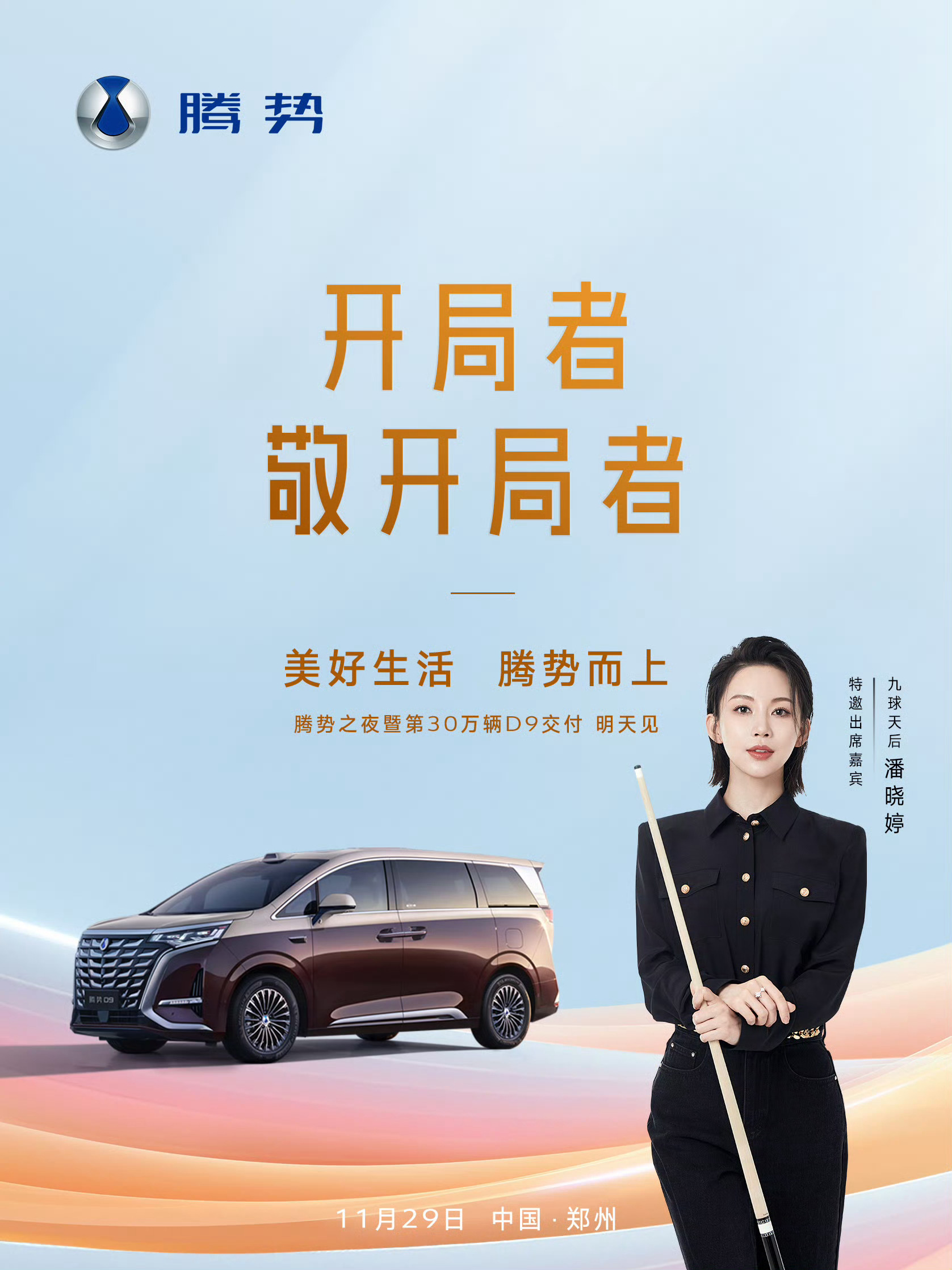 11月29日腾势之夜与九球天后共赴新局,腾势而上新能源MPV冠军腾势D9第30万辆达成名流座驾腾势D9