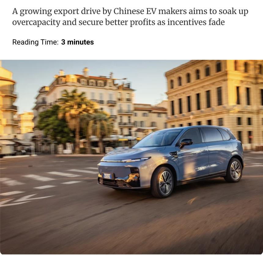 外媒:中国电动汽车制造商正加速海外扩张,以应对国内销售增长放缓及政府补贴减少的双重压力。 分析人士指出,车企通过海外销售每辆车可获得约20,000元人民币的净利润,因此纷纷推出更多车型并开拓新市场。 例如,Stellantis支持的零跑汽车本周宣布将在巴西和智利推出两款车型,计划年底前在巴西27个城市展示车辆,并在智利开设五家门店,未来还将拓展至阿根廷、哥伦比亚和厄瓜多尔等南美市场。