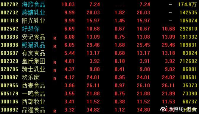 消息面上,四川官宣,婚假由5天延长到20天,延长女方生育假90天,延长男方护理假至30天。大消费概念股盘中走强,阳光乳业、燕塘乳业双双拉升封板,熊猫乳品、欢乐家、品渥食品、皇氏集团等纷纷冲高。雷军回应小米汽车续航测试胖东来羽绒服进价430卖价597