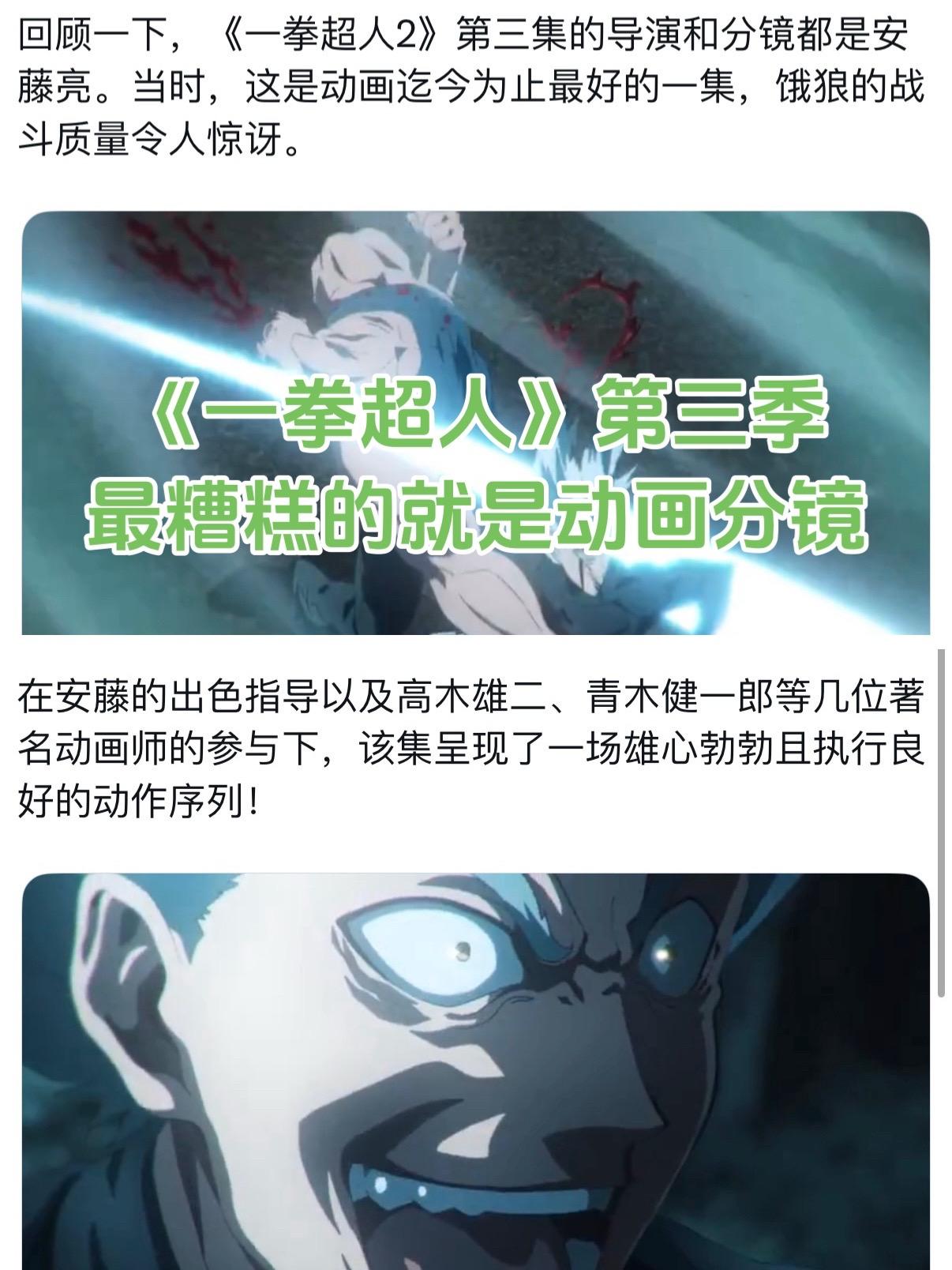 关于动画分镜。《一拳超人》第三季的分镜,很多动画博主都认为僵硬,也证明...
