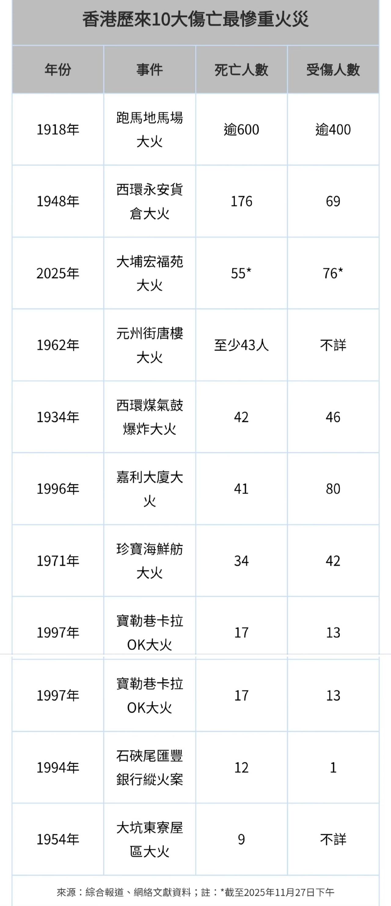 香港历史上最严重的住宅楼火灾就是这次。但历史上最大的火灾是100多年前跑马地公共场所大火,也是因为竹棚架起火。这次大火最吓人的是目前失联人数太多。