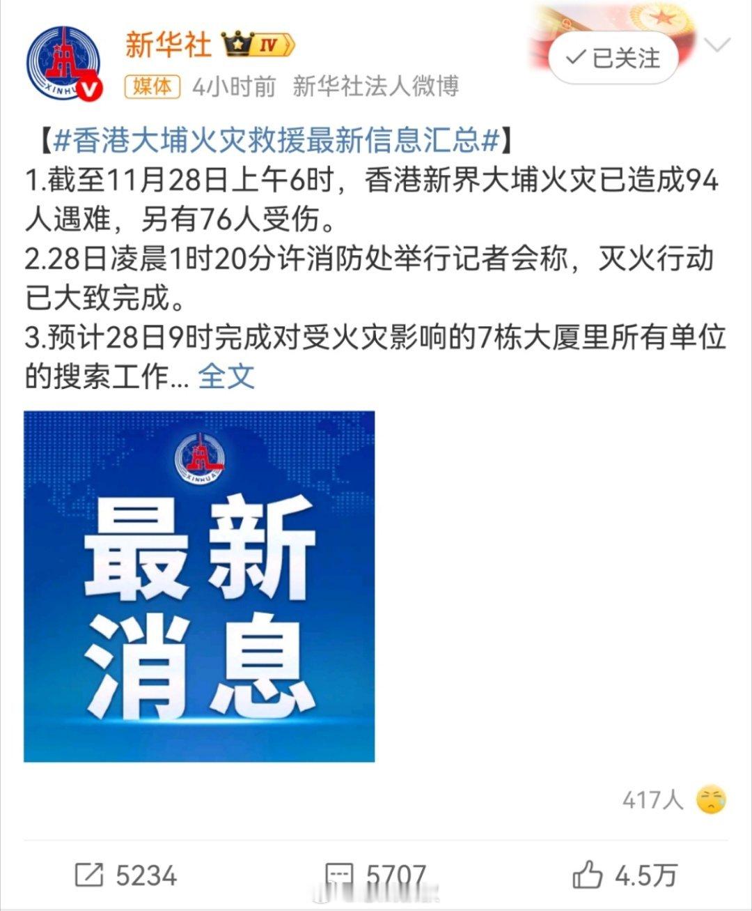 香港大火已致94人遇难逝者安息,生者坚强 广州