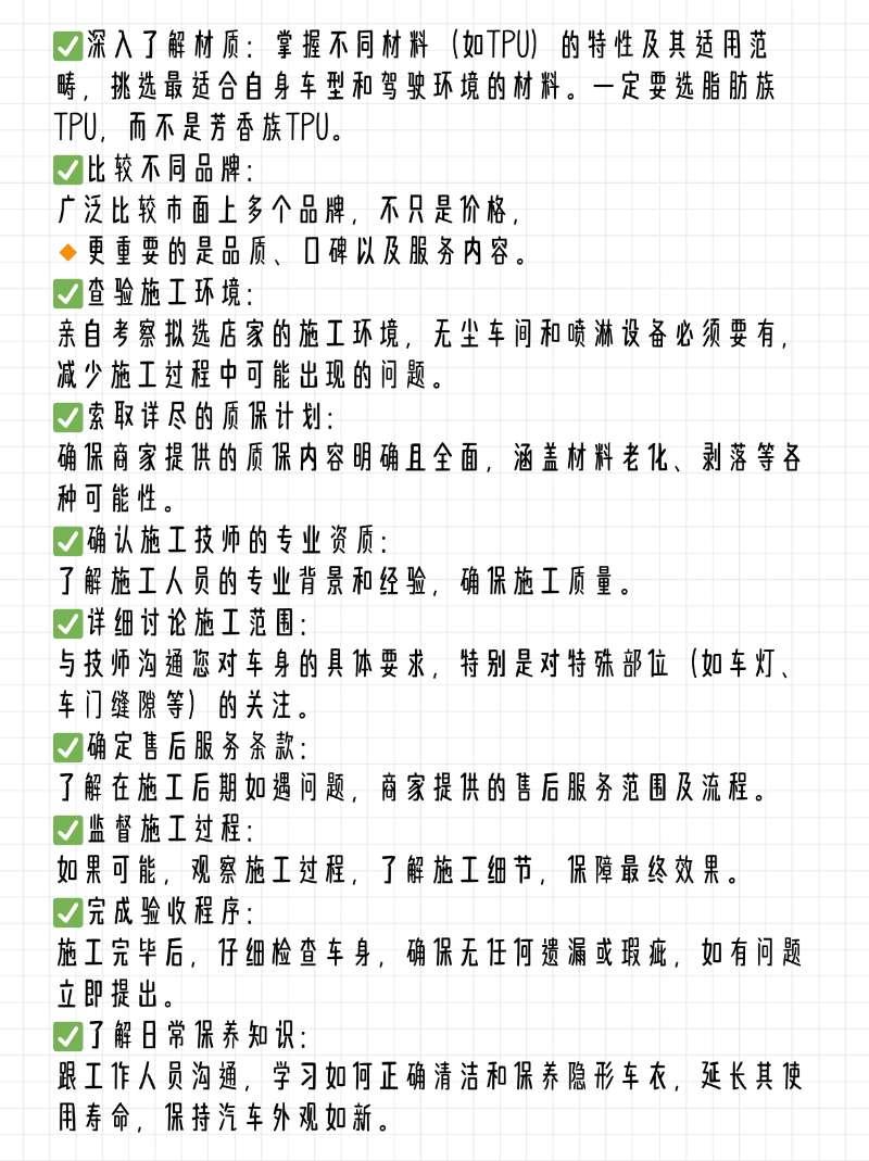 贴车衣小白必看:十要牢记,少走弯路刚买好车的贴膜小白注意啦!装贴隐形车衣之前,请收下以下十项“十要”准则!【来自懂车帝车友圈】