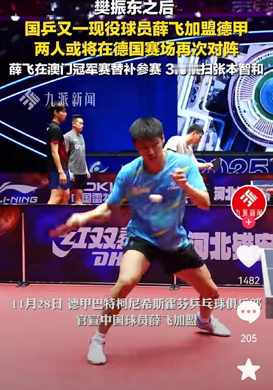 在樊振东加盟德甲之后, 如今,又一名中国乒乓球球员薛飞宣布加盟德甲,在不久的将来,两人或有可能来提高自己的技术瓶颈,出国打球或许能够更能让他静下心来研究自己的不足! 在这里只能默默的祝福他了!