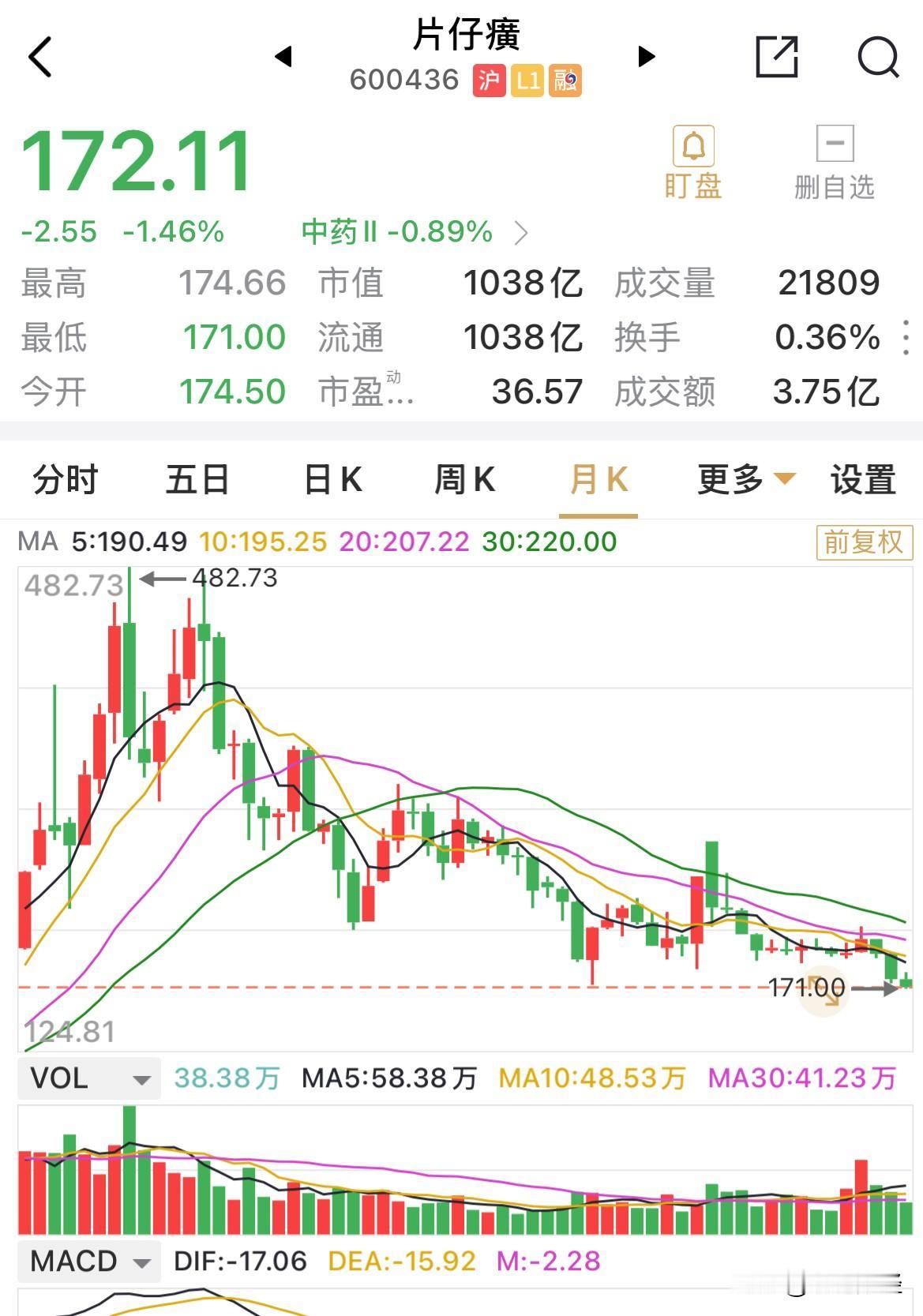 片仔癀竟然比2024年10月的那轮高点279元,股价跌去百余元,算了算差不多回调了40%,而动态市盈率则仍然保持在36倍以上的高位。 而以482元的历史高位来算,目前仅余1/3价格,也就是说彼时总市值在3000亿元左右,而其净利润却从来未达到30亿元,超百倍以上的市盈率。 这估计就是A股市场呈现出的不成熟态势的集中体现,靠讲故事来推动股价。 乐呀财经