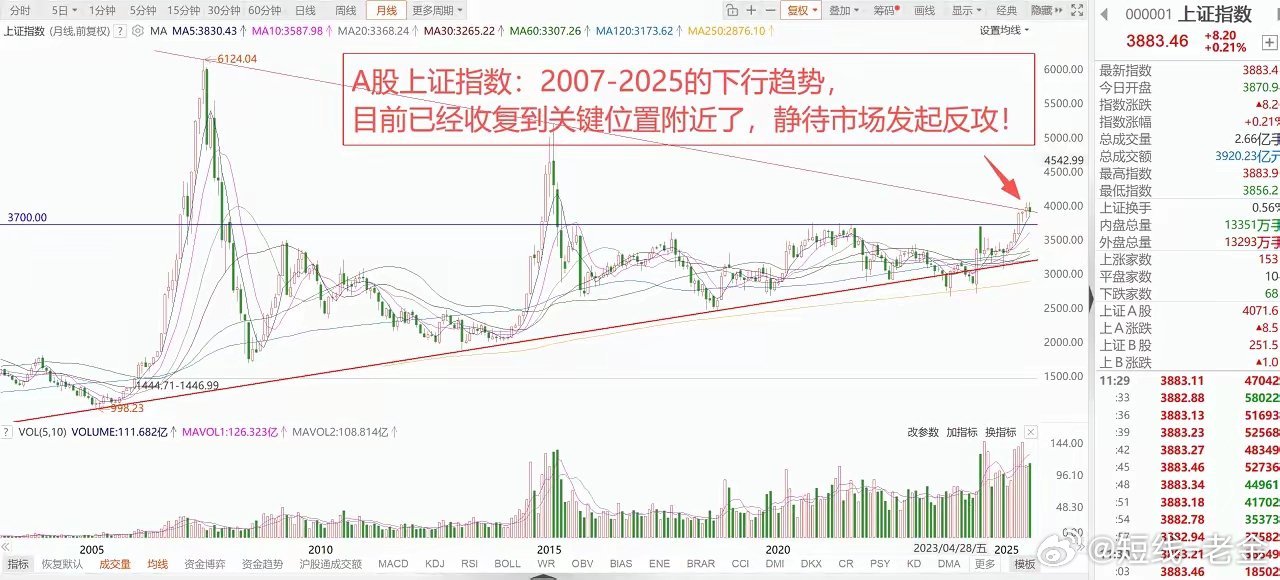 亚太股市走弱,A股各大指数全线普涨!为何却严重缩量?1、亚太股市走弱,港股横盘涨跌分化昨夜美股因感恩节假期休市,欧洲股市全线普涨,但是今天亚太股市走势偏弱。日经225指数开盘后,横盘水下震荡微跌,韩国股市小幅高开之后马上跳水,北京时间午间11点30分,跌幅达到1.24%。港股横盘震荡涨跌分化,恒生指数同样在11点30分微跌0.12%,但是恒生科技指数微涨0.28%。2、A股4大指数全线普涨A股不同于亚太股市的弱势,上证指数遭遇开盘下跌,上午十点开始震荡回升上涨,截止午间收盘微涨0.21%,收在3883点,虽然沪指涨幅不大,但是个股表现要好于指数表现。且截止午间收盘,深证成指、创业板指、科创50指数也全面上涨,涨幅分别为0.72%、0.71%、1.14%。3、市场严重缩量!怎么看?虽然各大指数普涨,量能还在继续大幅萎缩,本来近期都是在逐步缩量状态,结果今天还要比昨天还要大幅缩量。上午半天成交额都没有破万亿,仅9763亿,比昨天上午量能萎缩10%,半天缩量就达到了1123亿。市场还在延续观望情绪,但是做空力量已经明显减弱了,即便是如此缩量也能带动行情上涨,说明经过一段时间的洗盘,筹码趋于集中。4、科技股回暖上午还是科技类题材表现强势,低估值核心资产表现偏弱,作为科技的上游资源,有色板块上午涨幅居前,涨幅达1.47%,资源类仍然是后续主线行情之一。另外,半导体、工业机械板块涨幅居前,分别为1.31%和1.29%,昨天收评已经做到了重点提醒。近期科技股回暖的迹象非常明显。综上所述,今天是11月的收官之战,而A股大盘上证指数从8月至今,洗盘长达三个多月了,这个过程中洗盘的中心在向上偏移,还突破了上行趋势。上周由于美股引起的全球科技股下跌回踩,导致A股再度跌破趋势,现在美股科技股已经恢复上涨,此前造成的杀跌需要被市场修复,目前修复只是时间问题。静待股市新一轮的春暖花开!雷军回应小米汽车续航测试A股商业航天板块多股涨停
