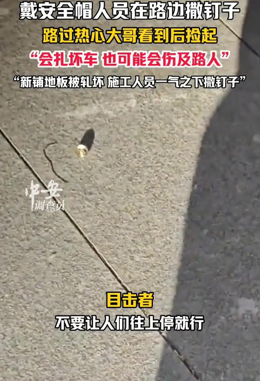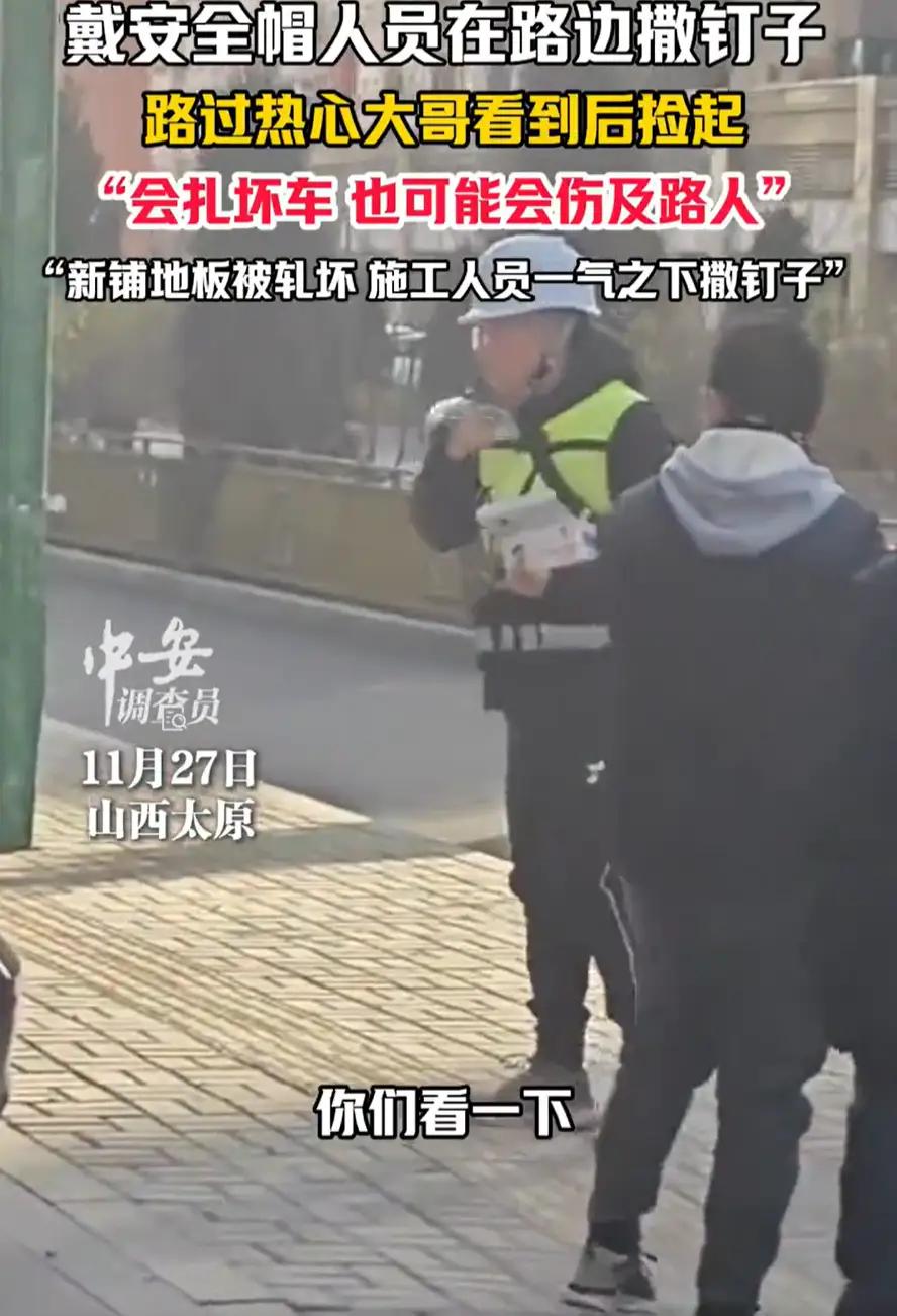 山西,一大哥路过某工地,竟然发现施工人员,在往地上撒螺丝钉子,大哥看到后捡起,并告知对方,这样不仅会扎坏车,也可能会伤及路人,可施工人员却说:他们新铺地板被轧坏,所以一气之下才撒钉子报复,大哥见劝说无效,只能自己把这些钉子捡起来! 这天,大哥路过工地时,无意间瞥见施工人员正弯腰往地面撒螺丝钉和铁钉,尖锐的钉尖朝上,在阳光下闪着刺眼的光,看得他心头一紧。 他立刻快步上前,弯腰捡起脚边的钉子,同时对着施工人员高声说道:“师傅,可不能这么做啊!这些钉子撒在地上,不仅会扎坏过往车辆的轮胎,万一路人不小心踩到,很容易划伤脚,多危险啊!” 可施工人员却满脸怨气地回应,原来是新铺的地板被过往车辆轧坏,他们心里气不过,才想出撒钉子法子。大哥耐着性子反复劝说,讲清这种行为可能造成的严重后果,可施工人员始终听不进去,依旧满脸抵触。 见劝说无效,大哥没有再多说,只是默默蹲下身,一点点将散落在地上的钉子逐个捡起。他的动作很认真,哪怕钉子藏在缝隙里,也会伸手抠出来,生怕遗漏一枚。 最终,地上的钉子被清理干净,大哥拍了拍手上的灰尘,转身离开。