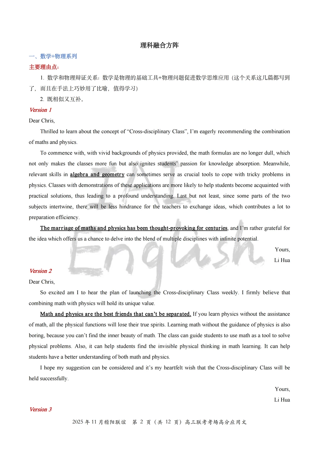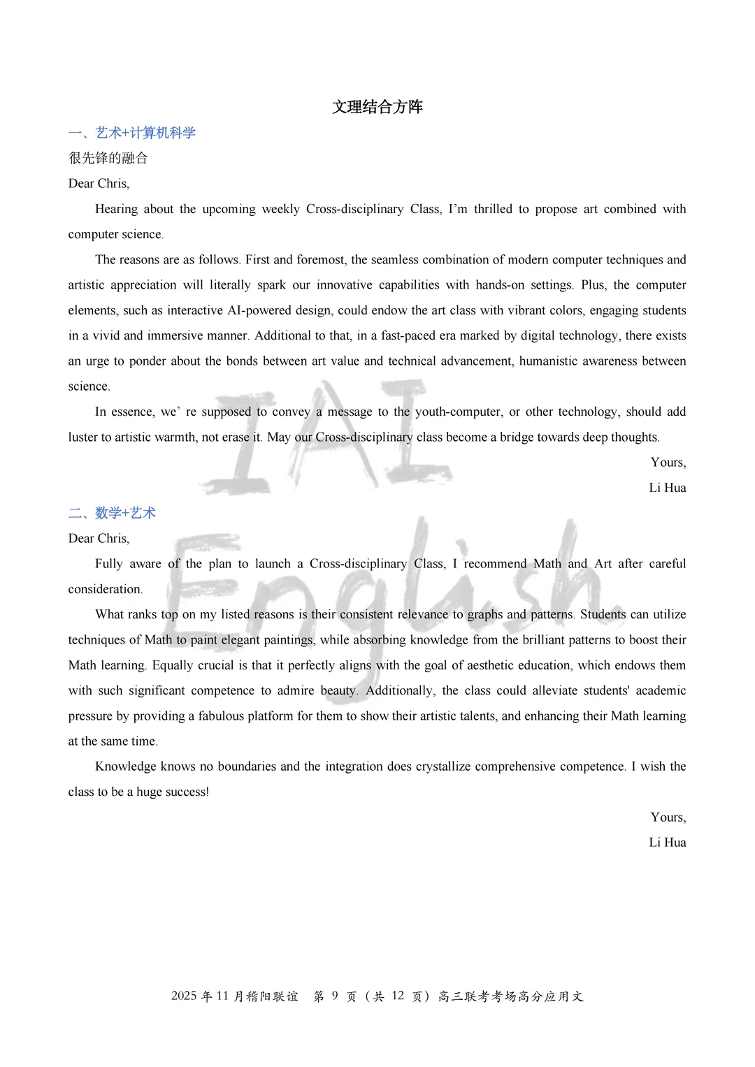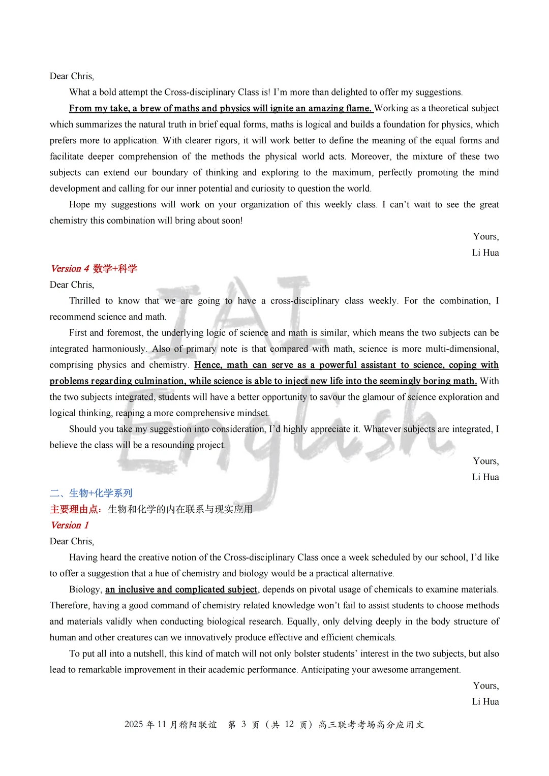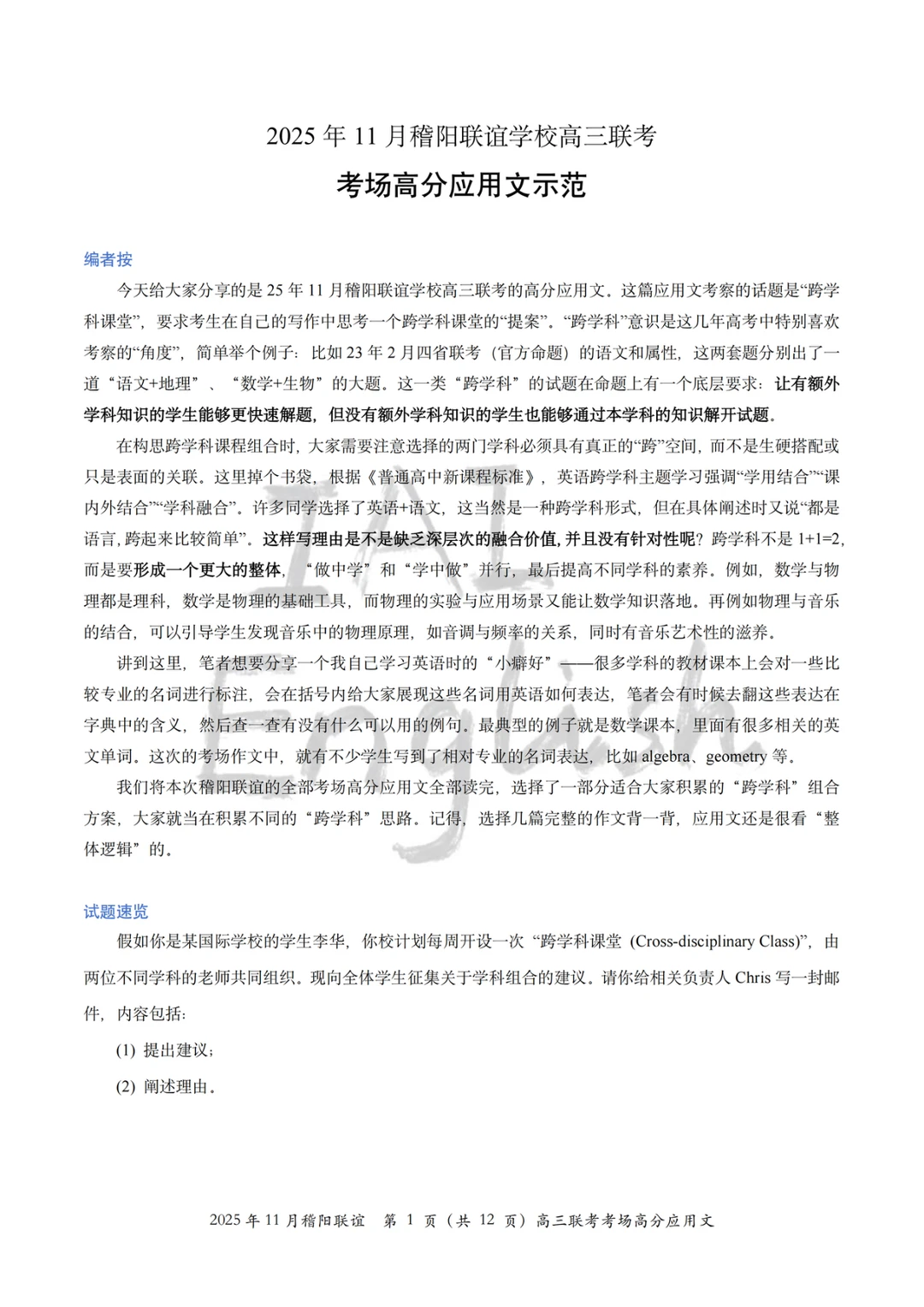 我们将本次稽阳联谊的全部考场高分应用文全部读完,选择了一部分适合大家积累的“跨学科”组合方案,大家就当在积累不同的“跨学科”思路。 记得,选择几篇完整的作文背一背,应用文还是很看“整体逻辑”的。