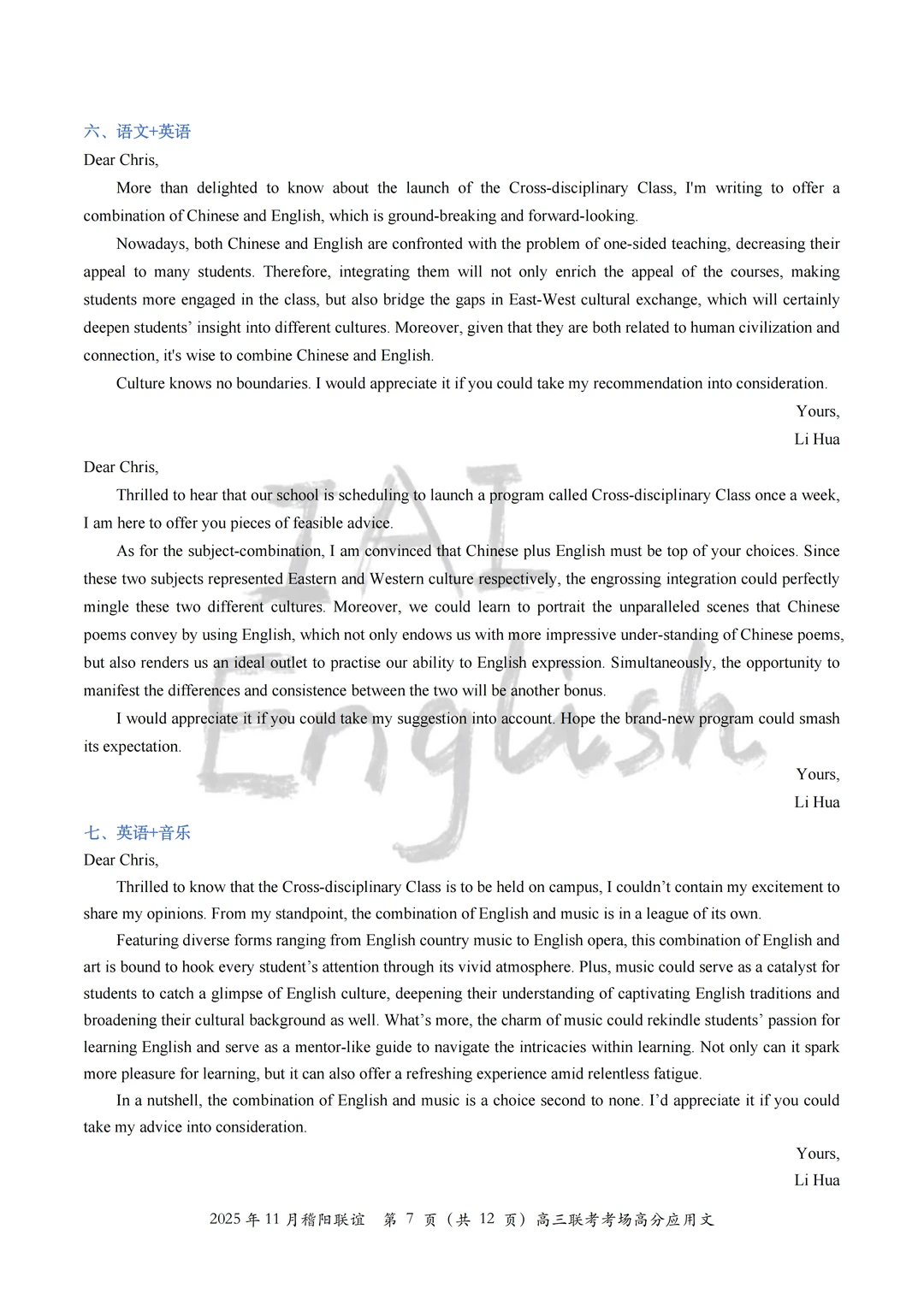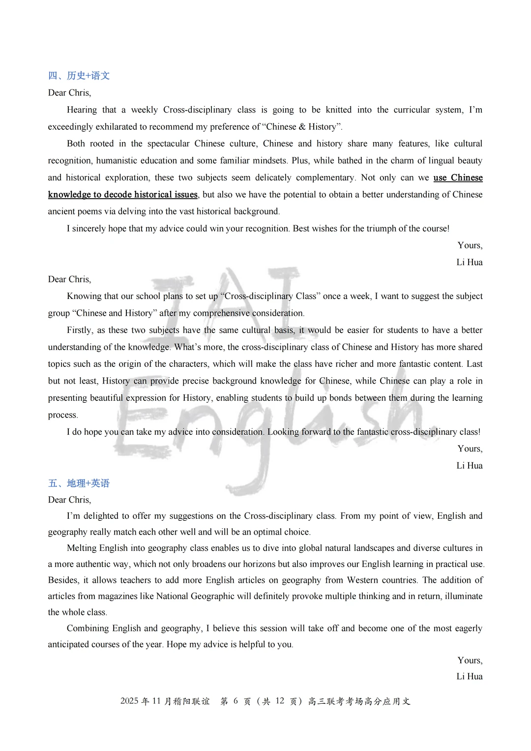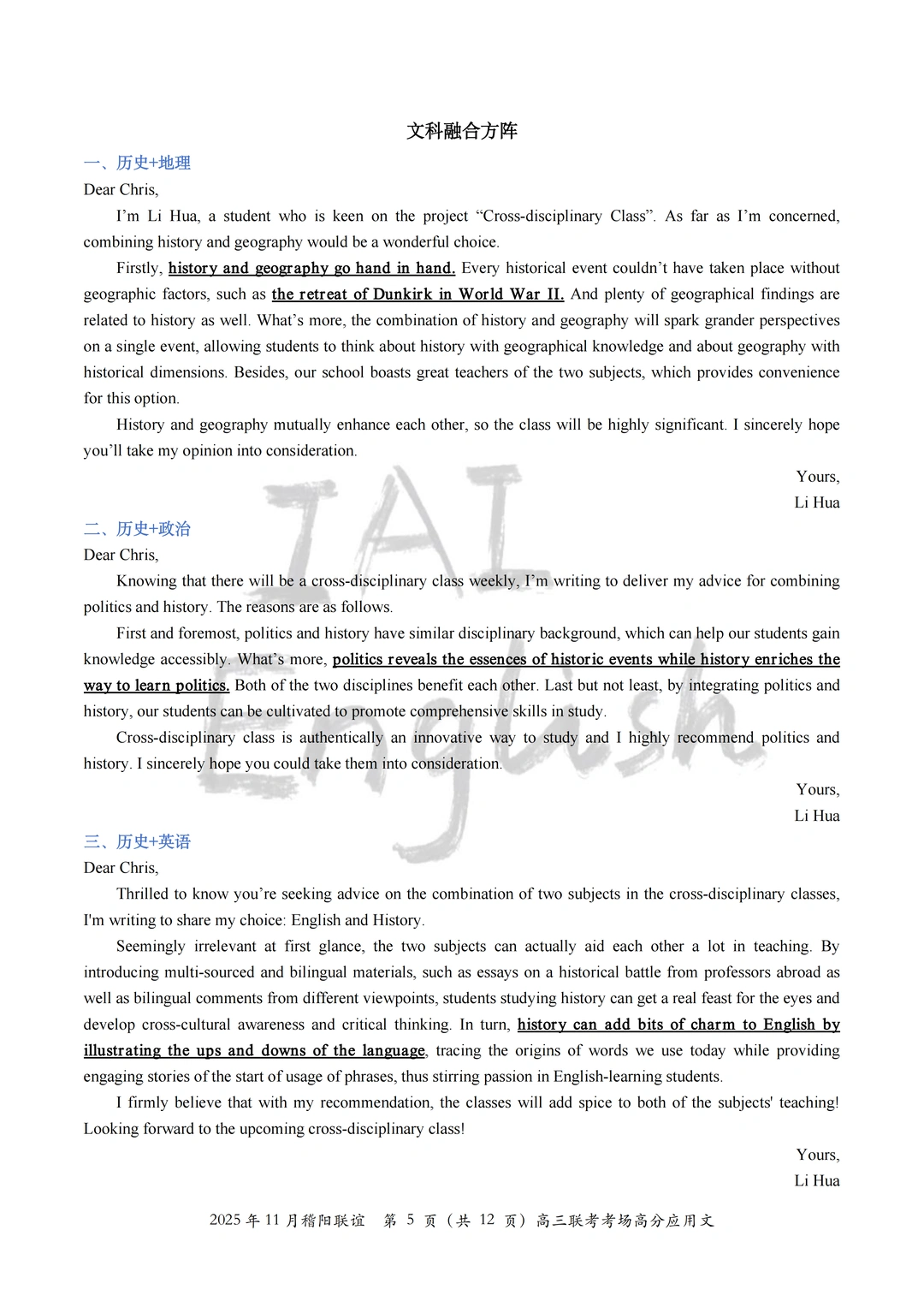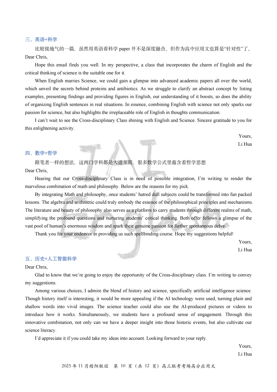 我们将本次稽阳联谊的全部考场高分应用文全部读完,选择了一部分适合大家积累的“跨学科”组合方案,大家就当在积累不同的“跨学科”思路。 记得,选择几篇完整的作文背一背,应用文还是很看“整体逻辑”的。