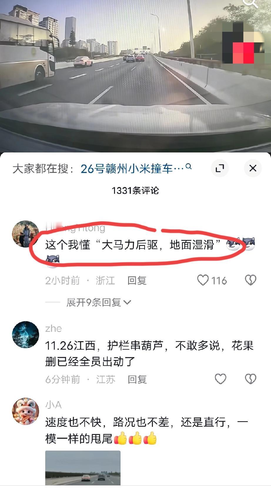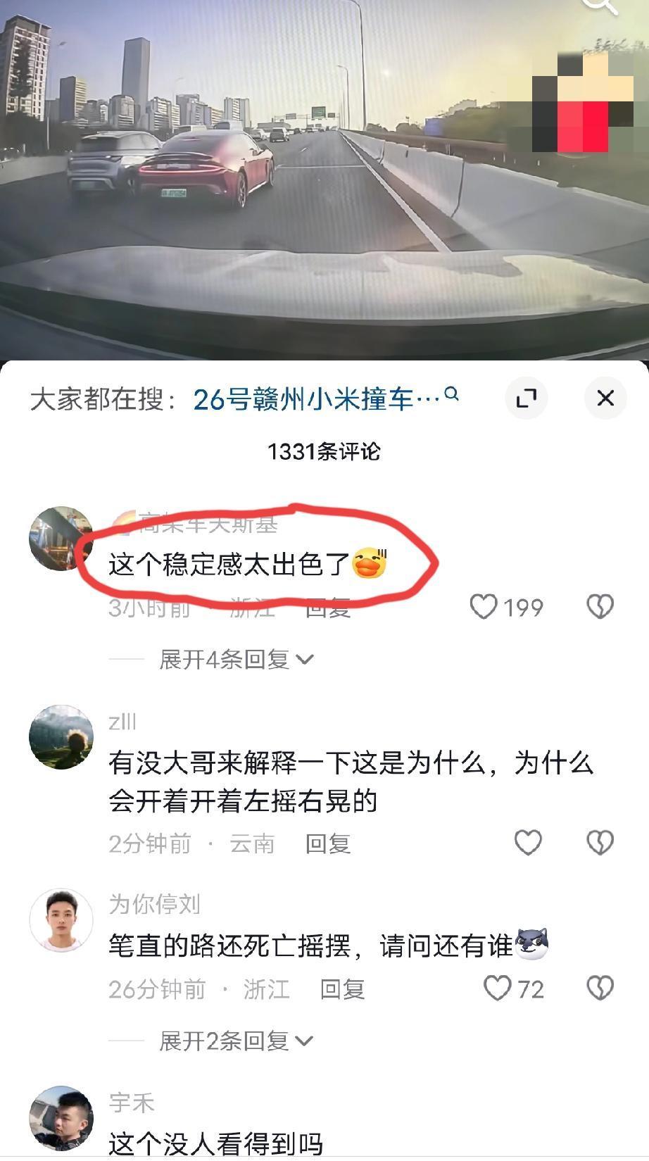 其他视角记录的一段某网红车的剐蹭事故视频:该网红车路上开的好好的,速度好像也不快,就这么水灵灵的在视频车前面做起了甩尾动作,当然,和边上的车发生剐蹭也是必然的…… 评论区点赞最多的一条评论是套用了某千亿总裁的那句话:“这个稳定感太出色了”。 还有一条评论也经常会在评论区看到:这个我懂“大马力后驱,地面湿滑”。 都不知道哪些是友军、哪些是黑粉了?[我想静静][我想静静][我想静静]