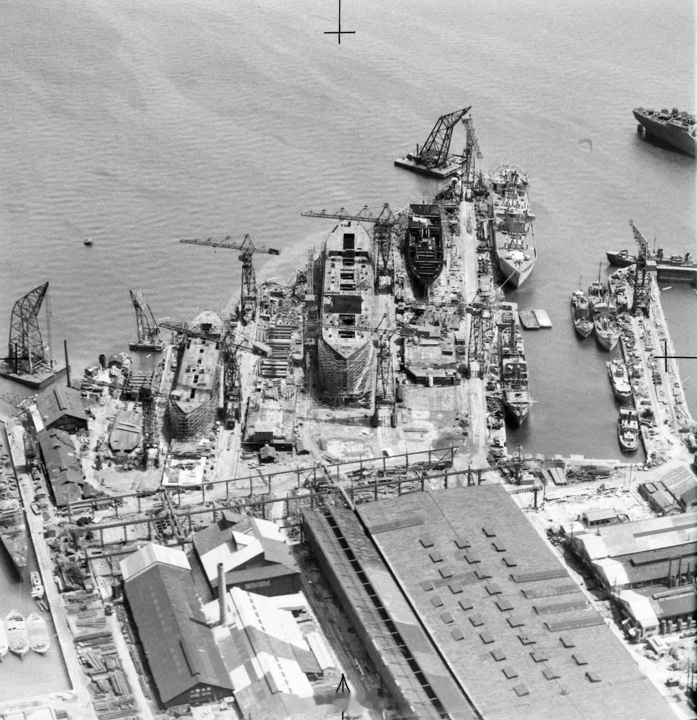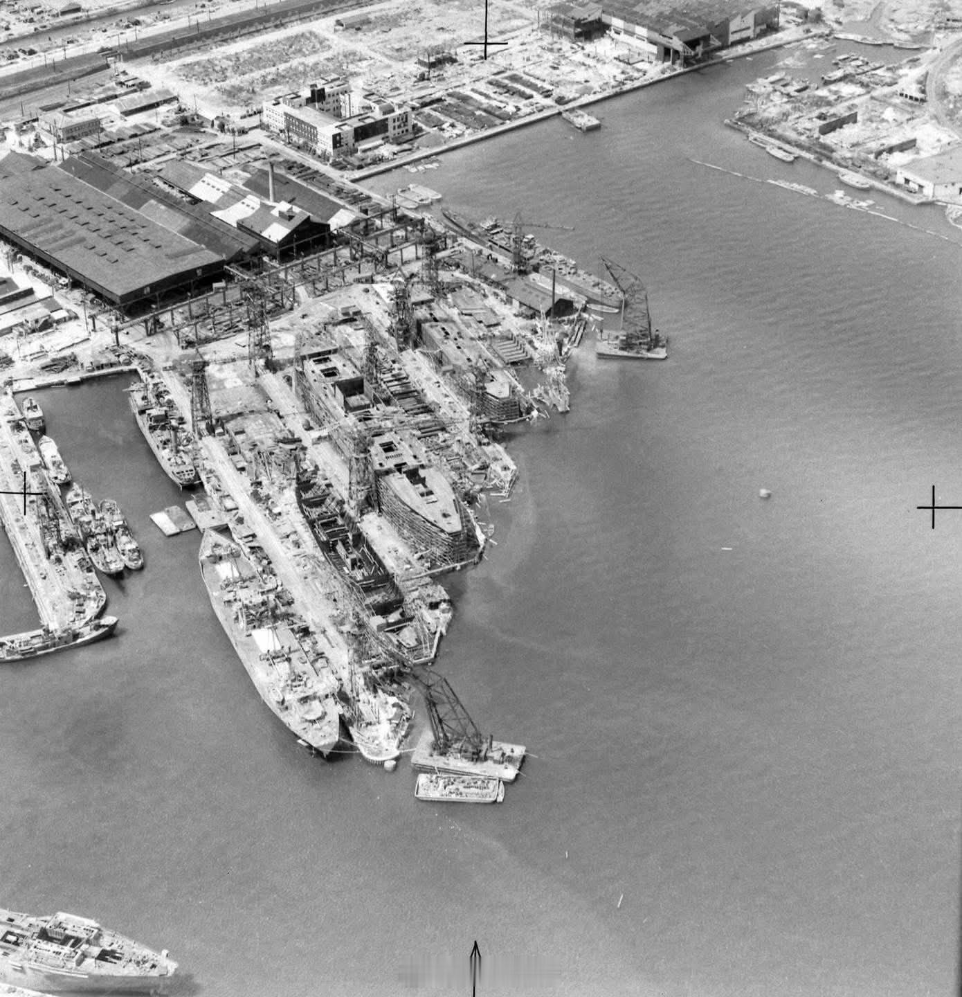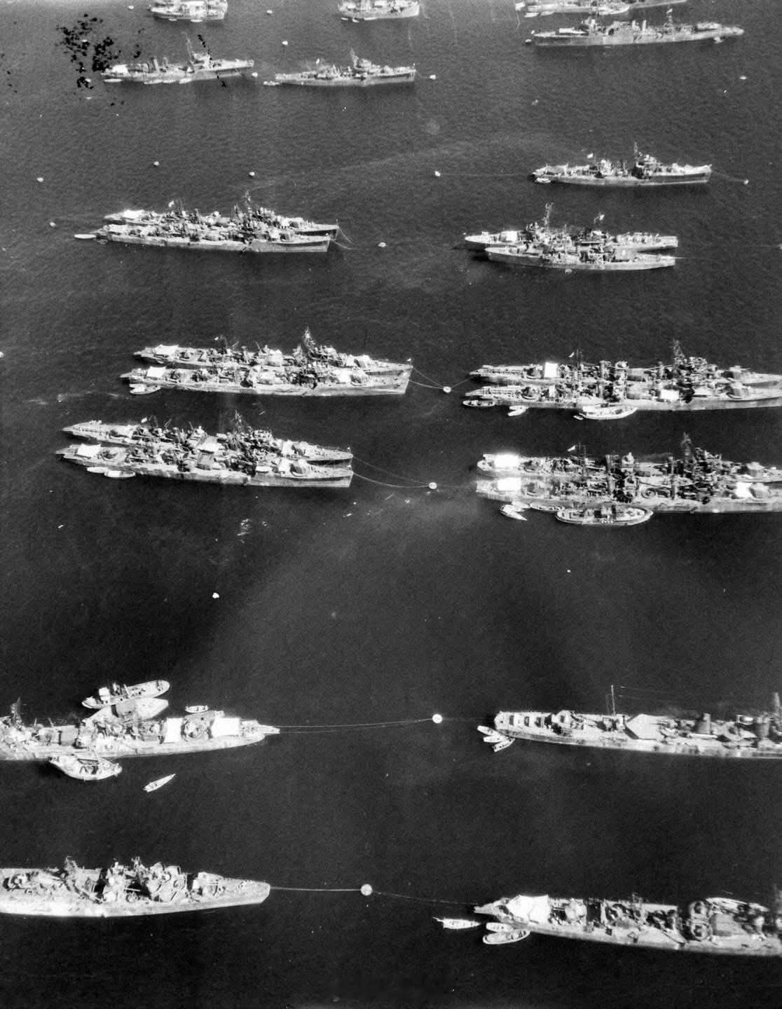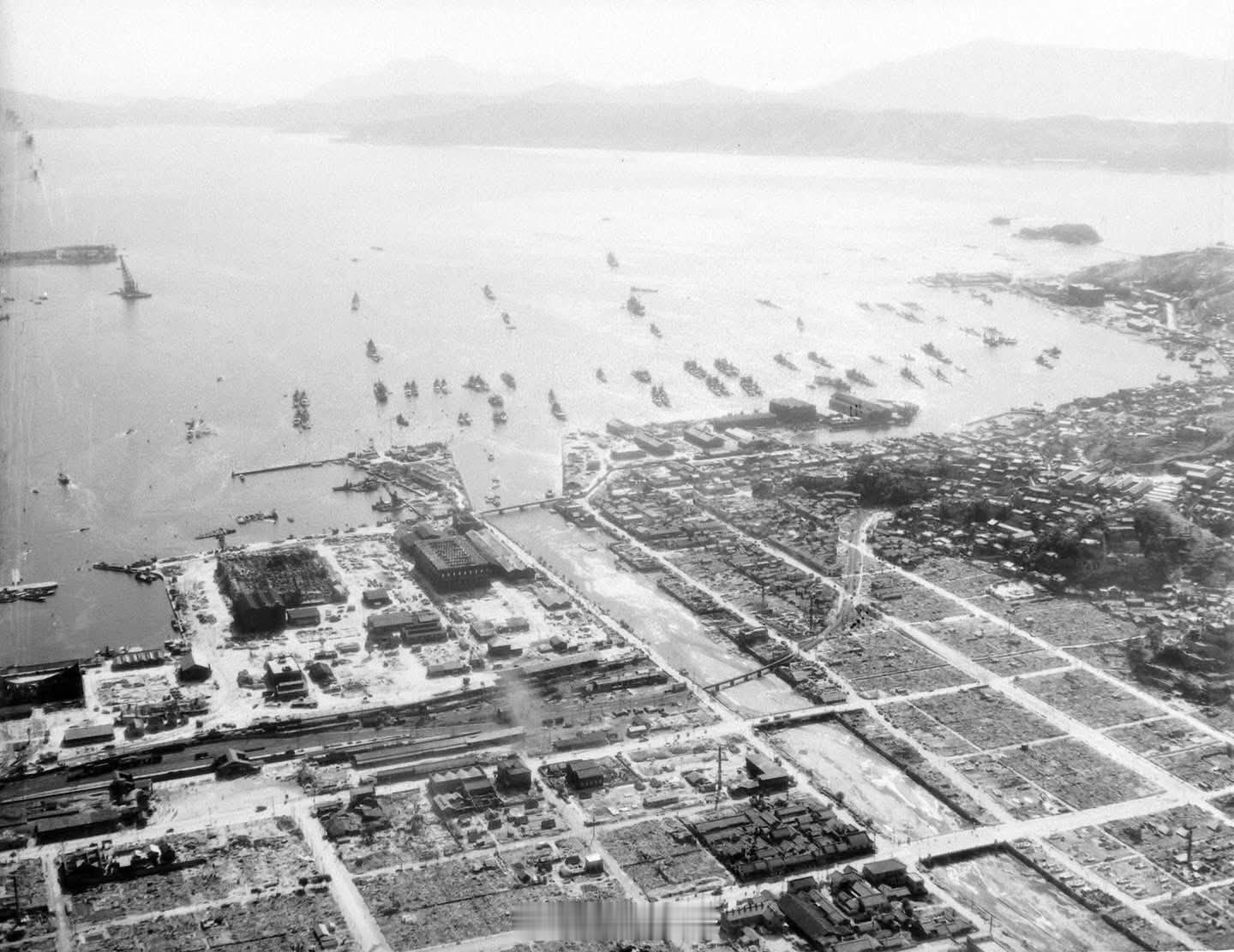 1945年8月/9月日本境内幸存日本海军军舰的航拍照片。1945年8月18日,日本驻马尼拉特使提交了有关剩余日本军舰的报告。这些军舰并非用于人员运输或扫雷,而是停泊在东京湾或佐世保。LIFE杂志档案馆 - 摄影师乔治·西尔克武器装备航空创作计划海军