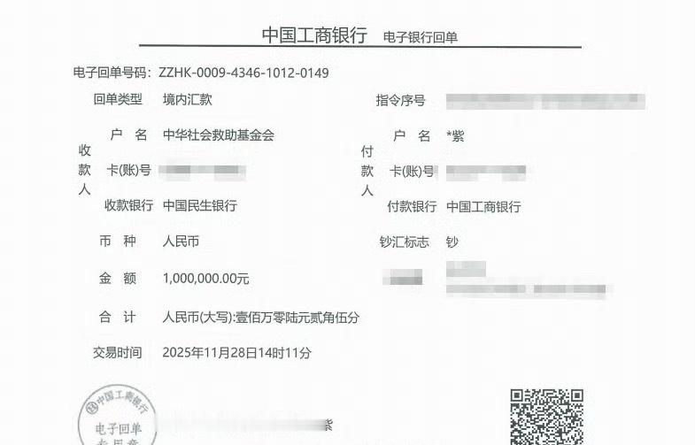 杨紫捐赠香港大埔火灾人民币100万元,与同胞共渡难关。