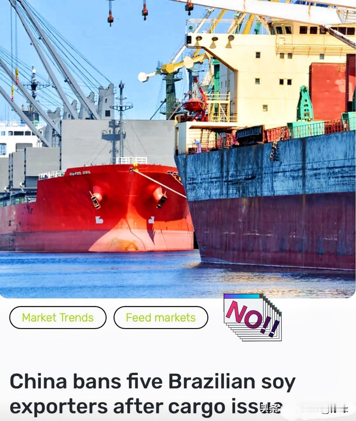 外媒:中国禁止五家巴西大豆出口企业向中国出口大豆!巴西农业部已接到中国当局通知。罪魁祸首竟是混在船舱里的农药小麦! 路透社、《圣保罗报》等外媒都报道了这事,咱可不是随便下禁令的,海关检测时,在运载大豆的船舱里发现了经过农药处理的小麦,存在安全隐患,所以果断拦下了这6.9万吨大豆,禁令从11月28日就正式生效了。 涉事的企业都是行业里的熟面孔,包括嘉吉在巴西的两家工厂,还有路易达孚、CHS Agronegocio和3Tentos分别控制的三家设施。不过大家也别担心影响整体供应,这5家只是巴西2000多家对华注册出口企业里的少数,占今年巴西新季大豆出口量也就0.5%,比例不算大。 巴西农业部也第一时间回应了,说这事正以“最高优先级”紧急处理,还特意强调和中国的贸易关系依然稳固,没啥问题。而且按照目前的出口节奏,今年巴西对华大豆出口量预计会超过1亿吨,咱们依然是他们最大的农产品贸易伙伴。 其实说到底,不管是进口啥,食品安全永远是底线!咱们严格把关不是针对谁,而是对老百姓的健康负责。毕竟入口的东西,一丝一毫都不能马虎,你们说对不?