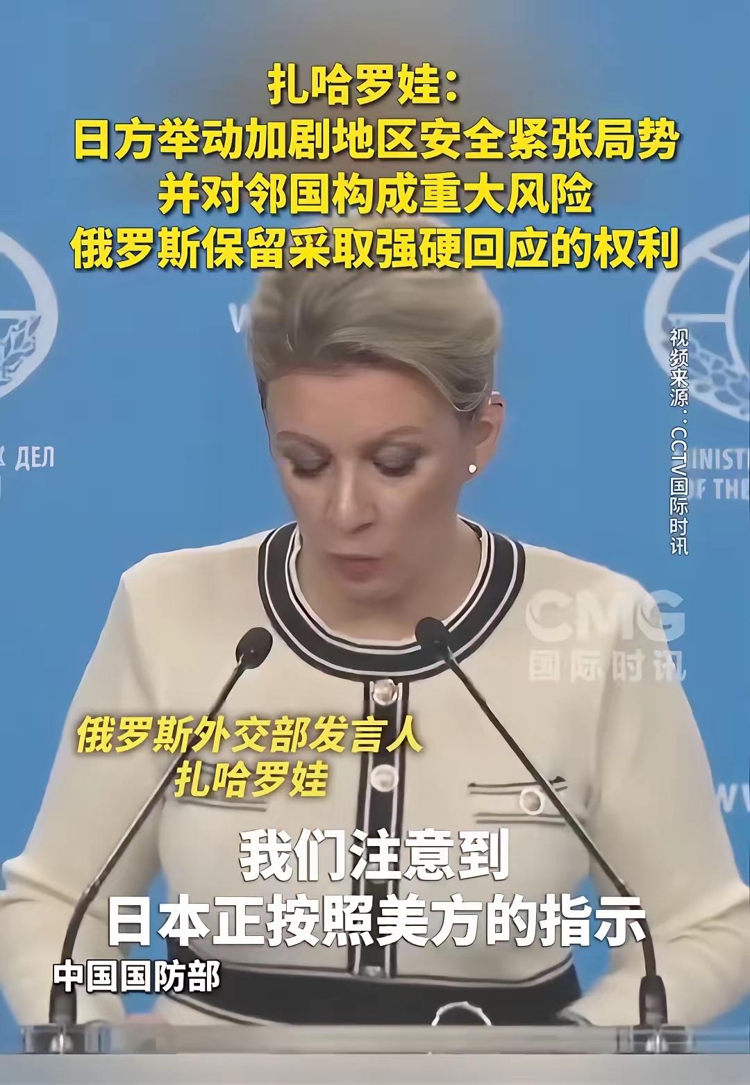 中国若有事,就是俄罗斯有事。俄罗斯外交部发言人的表态让日本胆战心惊! 随着日本在危险的道路上越走越远,中国态度越来越严厉,俄罗斯也表了态。 俄罗斯外交部发言人扎哈罗娃表示,日方举动加剧地区安全紧张局势,并对邻国构成重大风险,俄罗斯保留对日本采取强硬回应的权利。 扎哈罗娃的表态不是突发的外交辞令,而是俄中在地区安全问题上长期共识的直接体现。自冷战结束后,亚太地区的安全格局经历多次调整,日本的军事动向始终是俄中两国重点关注的焦点。作为二战战败国,日本曾签署一系列国际协议限制军事扩张,但近年来不断突破宪法约束,不仅大幅增加国防预算,还与美国强化军事同盟,在西南诸岛部署大量先进武器,这些举动早已超出正常国防需求。 俄罗斯与日本存在南千岛群岛(日称北方四岛)的领土争端,这一争议源于二战后期的国际安排,至今仍是两国关系的核心症结。日本多次在领土问题上对俄采取强硬姿态,甚至配合西方对俄实施制裁,这让俄日关系持续处于低位。扎哈罗娃的表态,既针对日本近期在亚太地区的军事动作,也暗含对日本在领土问题上挑衅行为的回应,明确传递出俄罗斯不会容忍日本单边破坏地区稳定的立场。 中国与日本的历史纠葛和现实利益交集,让两国关系始终充满复杂性。日本在历史问题上的模糊态度、在台海问题上的不当言论,以及在东海海域的资源争夺中采取的强硬手段,都让中日关系面临诸多挑战。近年来,日本更是加快与美国、澳大利亚等国的军事合作,试图构建围堵地区大国的军事网络,这种做法直接触碰中国核心利益,也让地区安全局势变得更加复杂。 俄中两国在反对日本军事扩张、维护地区和平稳定上有着高度一致的利益诉求。两国同为联合国安理会常任理事国,都肩负着维护国际秩序的责任,面对日本不断突破军事限制的行为,自然不会坐视不管。俄罗斯的表态,实际上是对中国立场的有力呼应,形成了维护地区安全的合力,这也是扎哈罗娃发言让日本感到紧张的关键原因。 日本的军事扩张并非孤立行为,背后有着深层次的战略考量。随着全球格局的深刻变化,日本试图摆脱二战后形成的军事约束,谋求政治和军事大国地位。但这种不顾历史教训、忽视邻国安全关切的做法,注定会遭到周边国家的反对。俄罗斯拥有强大的军事力量和坚定的外交立场,中国则具备深厚的综合国力和明确的底线思维,两国的联合回应,让日本的危险图谋难以得逞。 从历史上看,任何试图在亚太地区挑起事端、破坏稳定的行为,都没有好的结果。二战时期日本的侵略扩张给包括中、俄在内的亚洲各国人民带来了沉重灾难,这段历史早已成为地区各国的共同记忆。如今日本再次走上危险道路,不仅违背历史潮流,也忽视了周边国家维护和平的坚定决心。 各位读者你们怎么看?欢迎在评论区讨论。