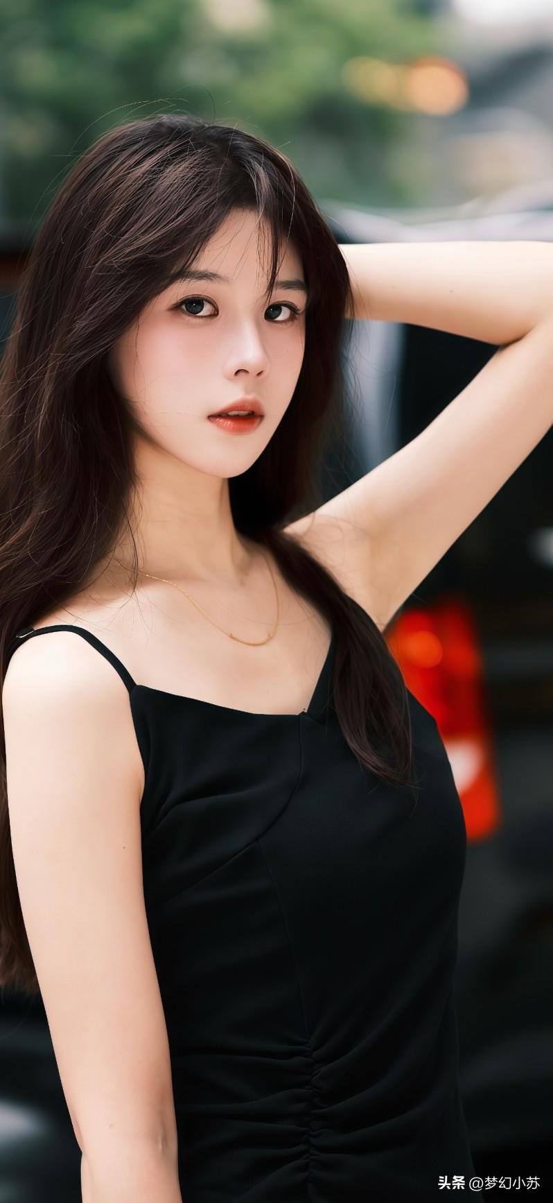 都市女孩,黑色吊带裙,自信微笑,时尚街头风分享喜欢的壁纸美到让人窒息的手机壁纸