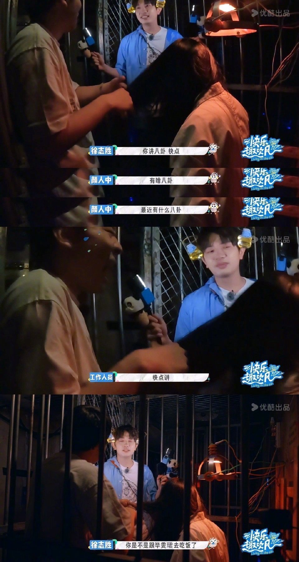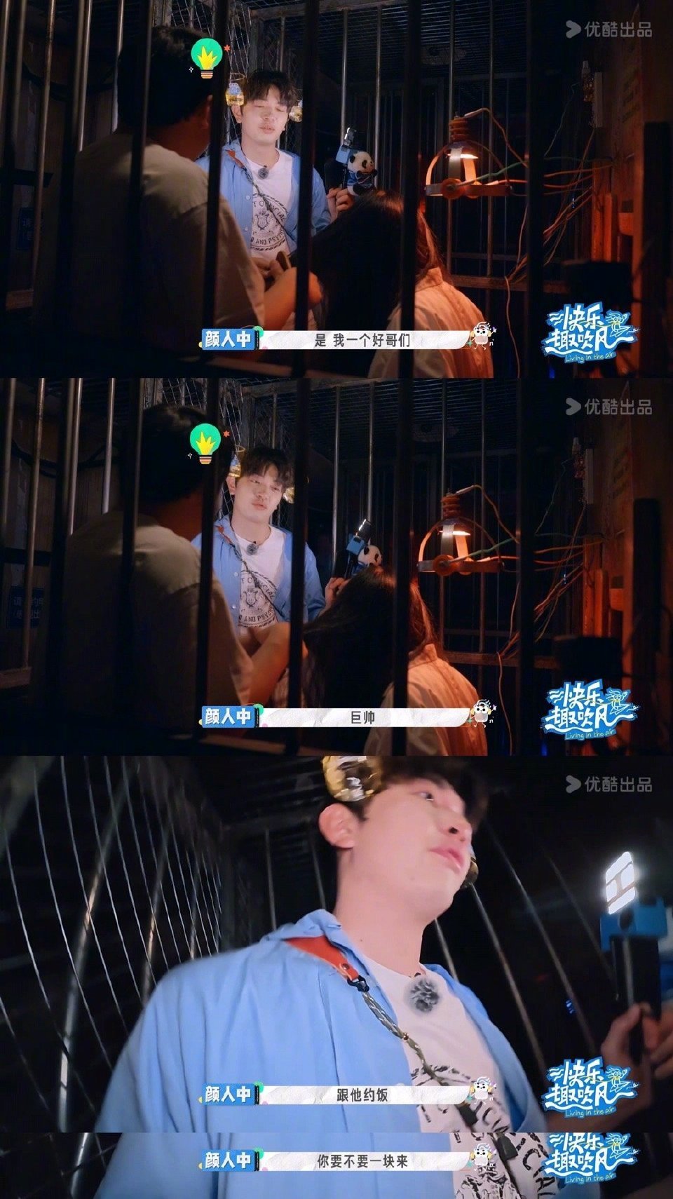 颜人中我也想和毕雯珺吃饭 密室环节也有瓜吃密室npc要求分享八卦,当颜人中苦于无八卦可讲时,徐志胜突然想起小颜最近和毕雯珺约了饭。颜人中立刻开启安利模式,不仅认证自己好哥们颜值巨帅,还开玩笑邀请NPC“你要不要一块来聚餐”~原来这就是帅哥的社交圈,颜人中能不能带带我,我也想和毕雯珺吃饭