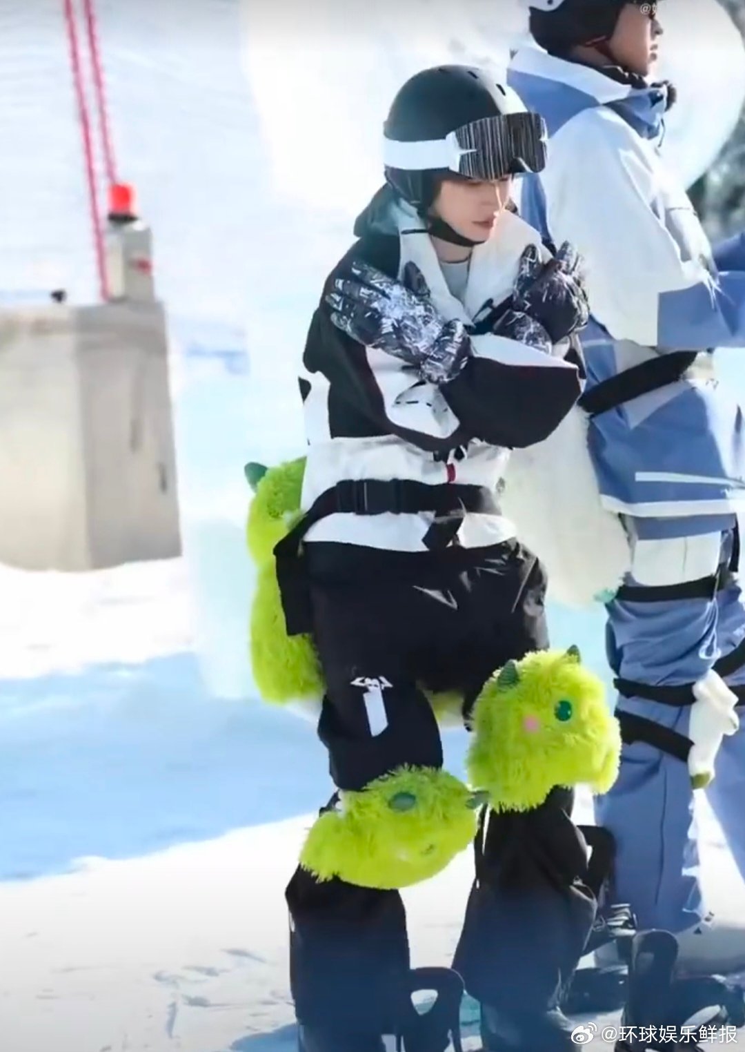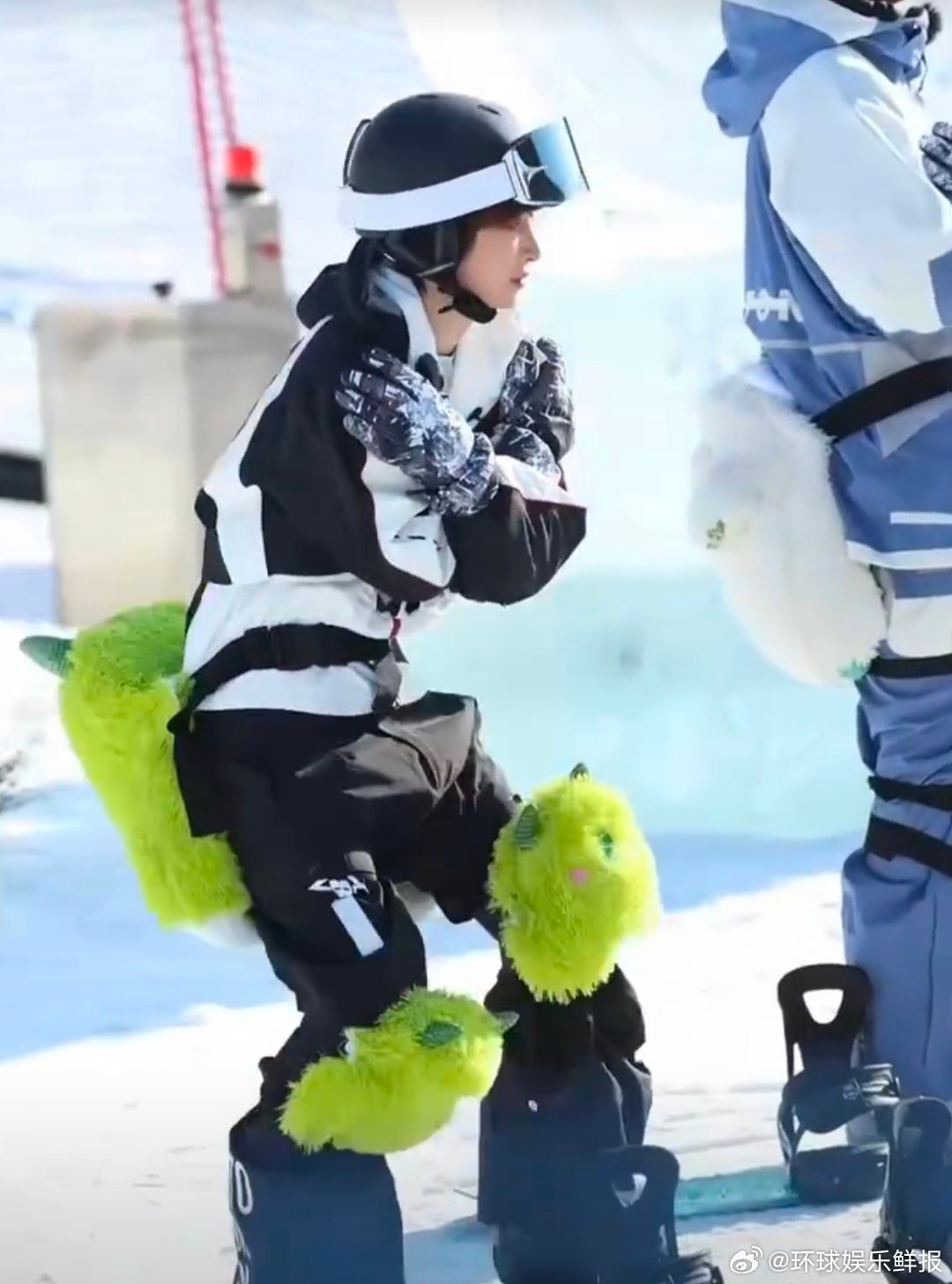 刘宇滑雪热身也不忘了比love你好星期六 刘宇雪场萌系暴击!独眼娃娃装备自带喜感,热身时还不忘比love,摔倒后自己爬起来的小模样,又憨又可爱,谁能不爱这种反差萌~