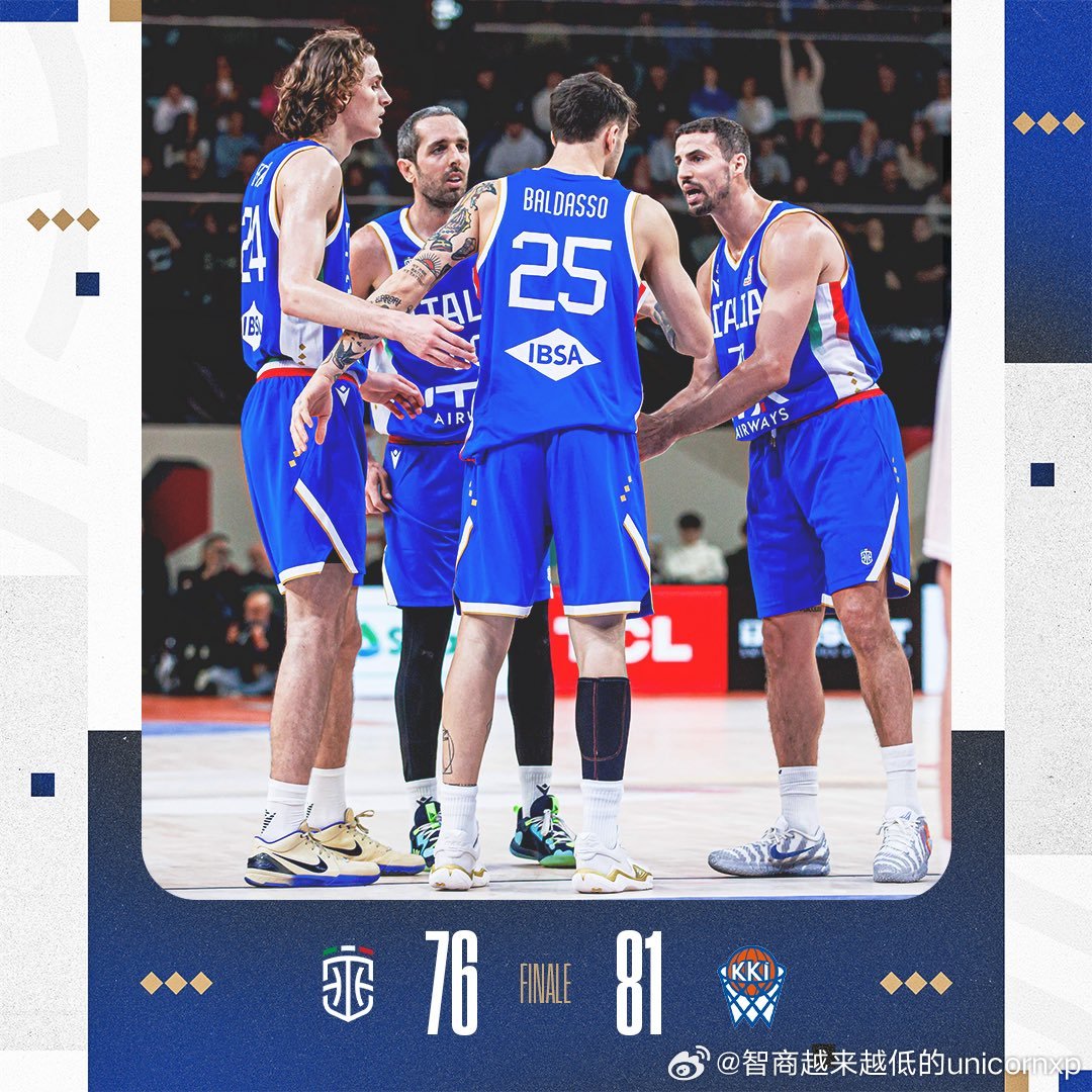 意大利男篮主场76比81不敌冰岛,完成骨髓移植手术的队长AchillePolo